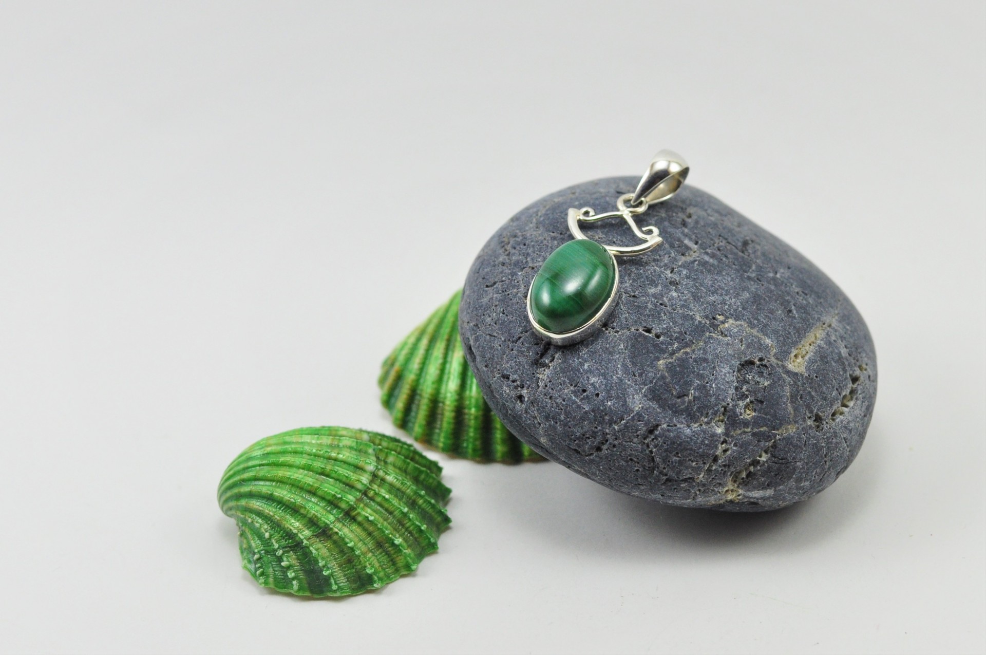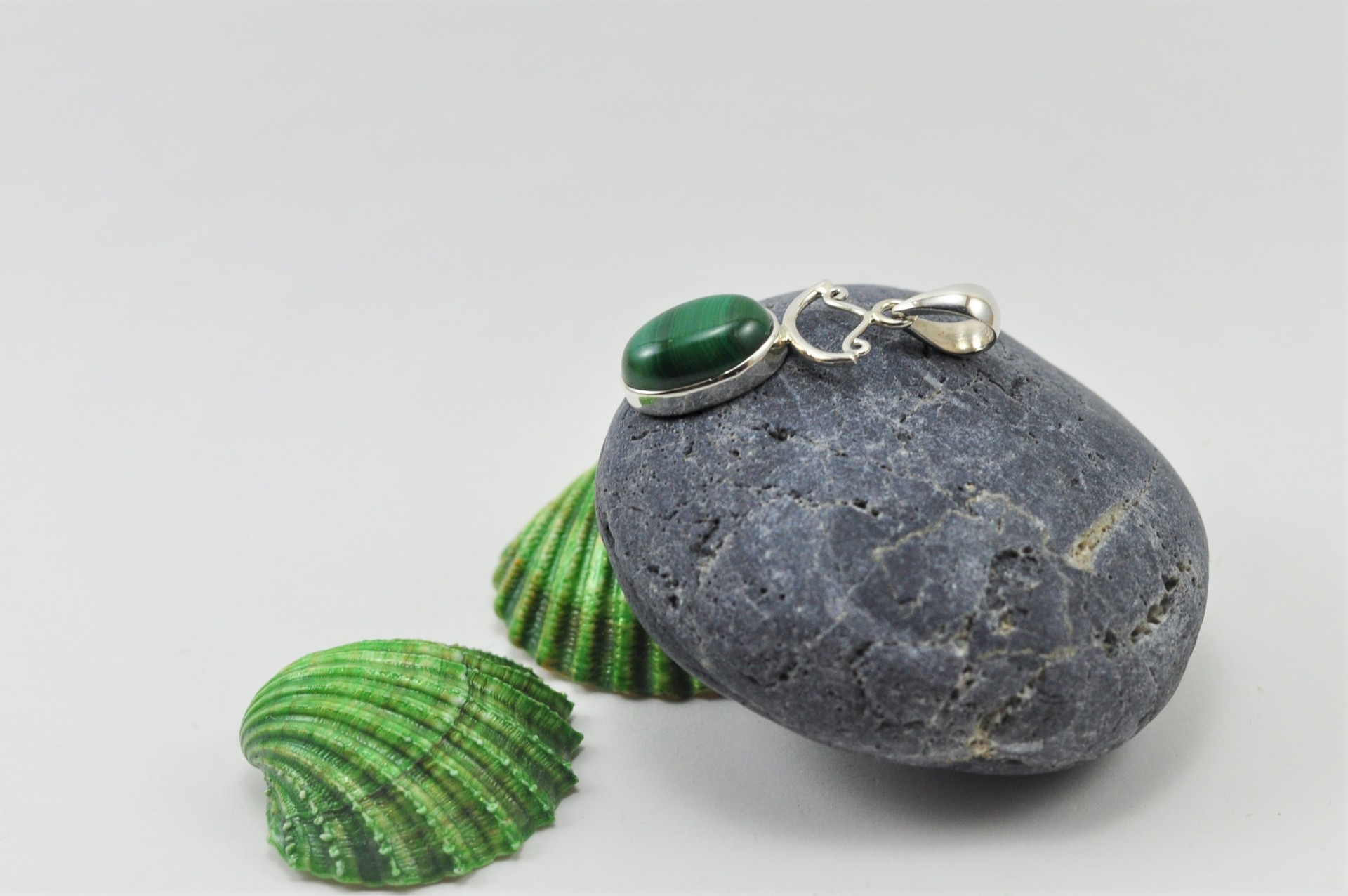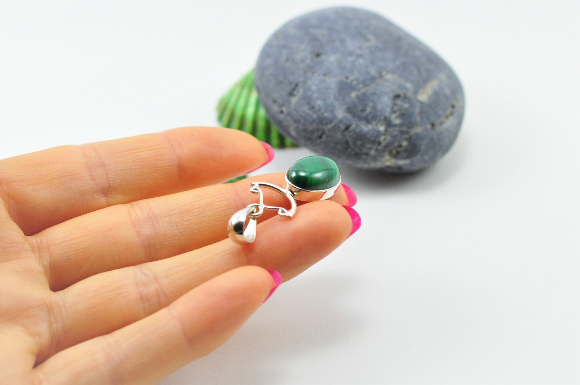 Pendente em Prata com Malaquita "Modelo Arpa"