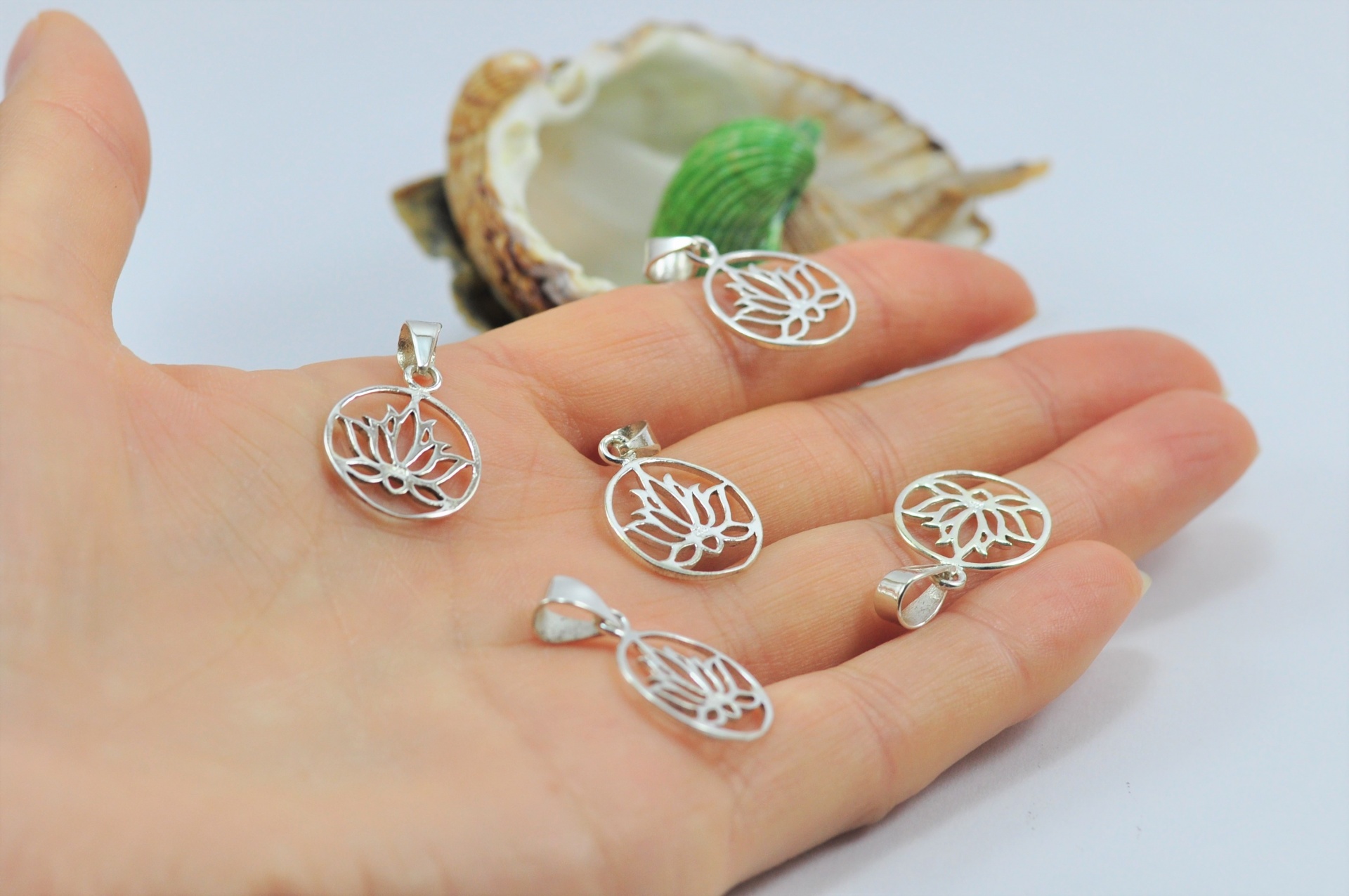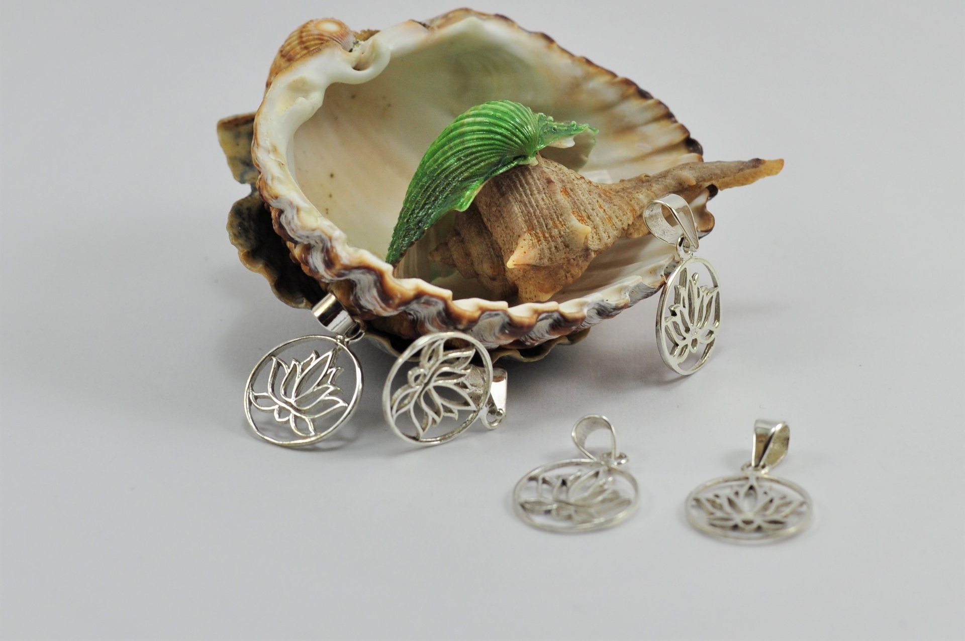 Pendente ou Pingente Flor de Lótus em Prata de Lei