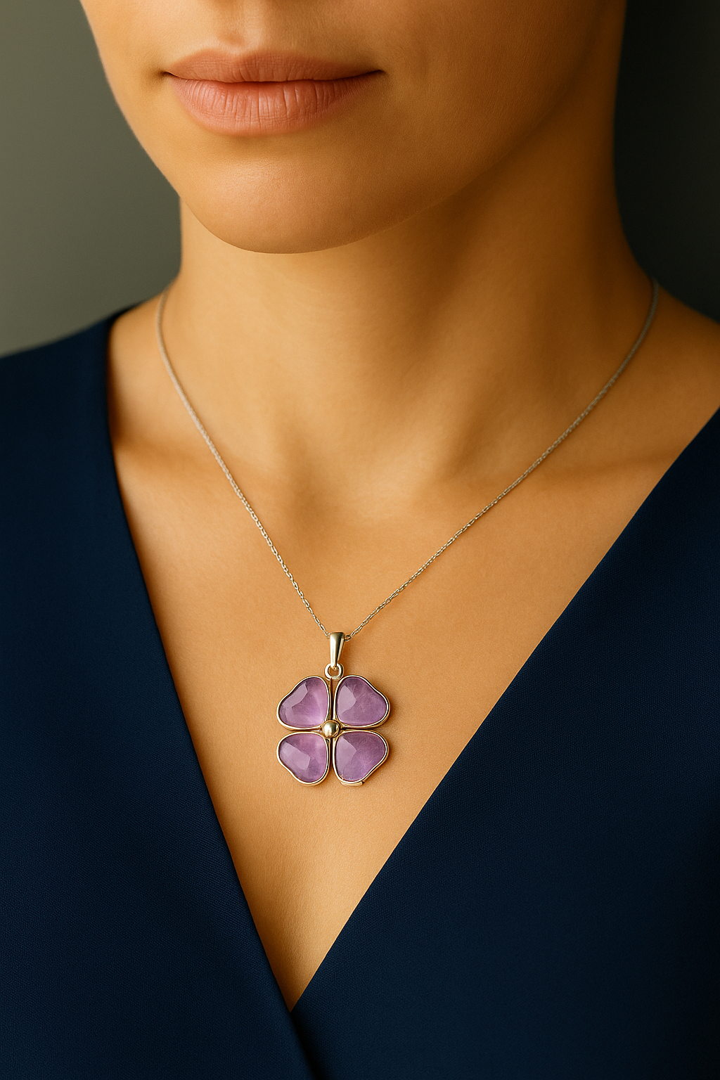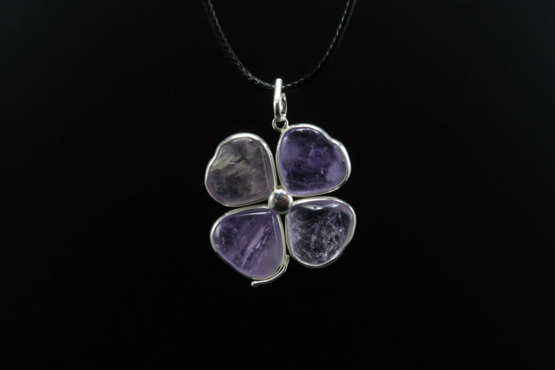 Este pendente em forma de trevo, feito em Prata de Lei 925, destaca-se pela sua simplicidade elegante e pela presença marcante da Ametista Natural — uma pedra associada à espiritualidade, equilíbrio e proteção energética.