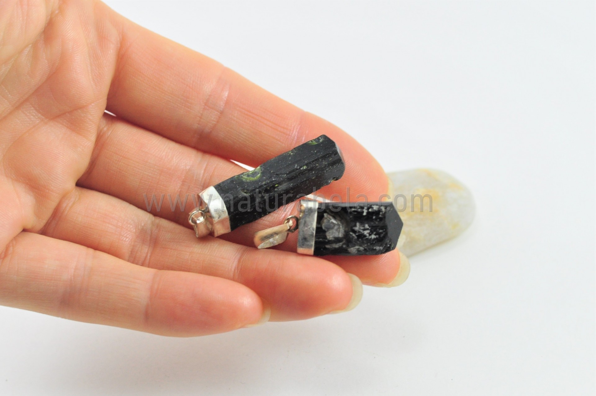 As peças a enviar já não correspondem ao das fotos. No entanto é similar, umas mais pequemas e outras maiores e com ou sem irregularides próprias da pedra turmalina negra.