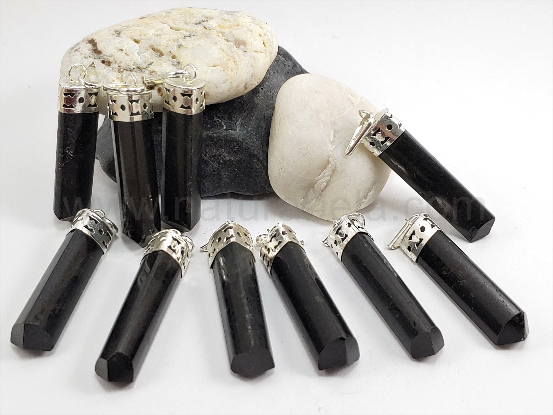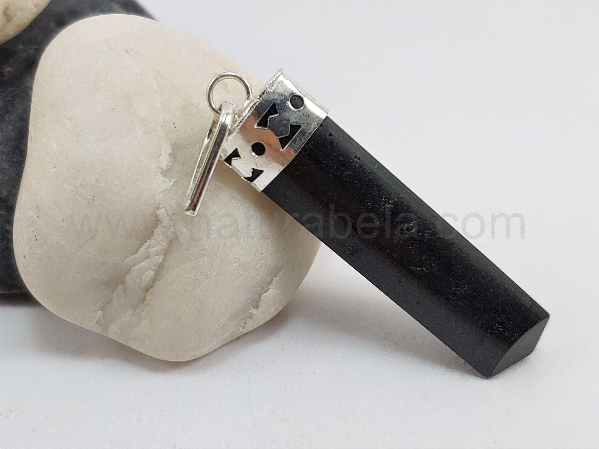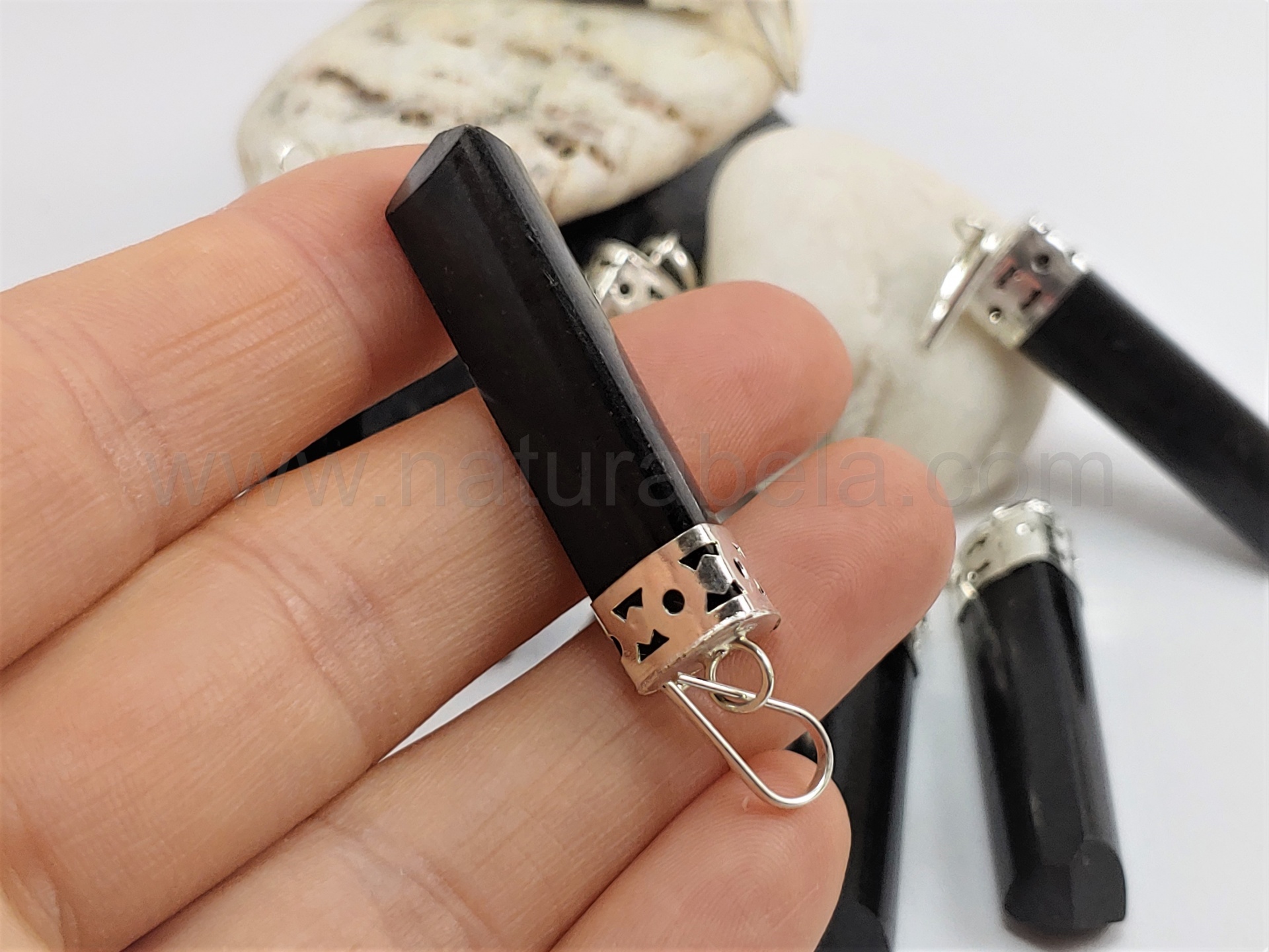 Pendente Bastão prateado com pedra natural de Turmalina Negra!