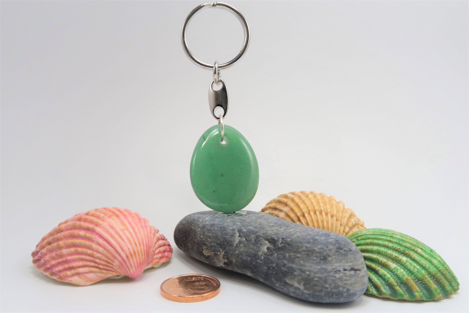 Porta-chaves em aço com uma linda pedra natural.