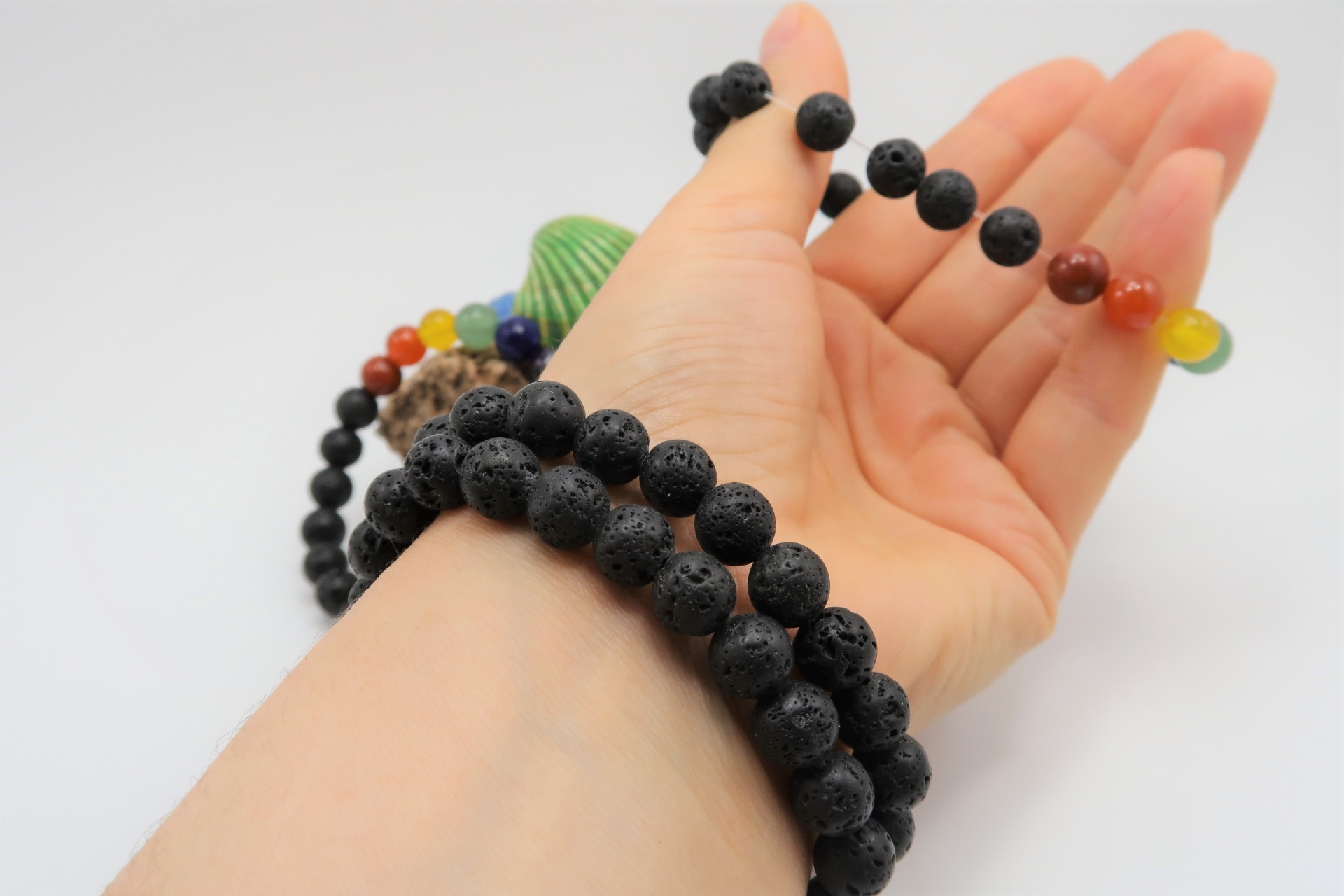 Pulseira 8 mm Pedra vulcânica (Lava) e Chacras