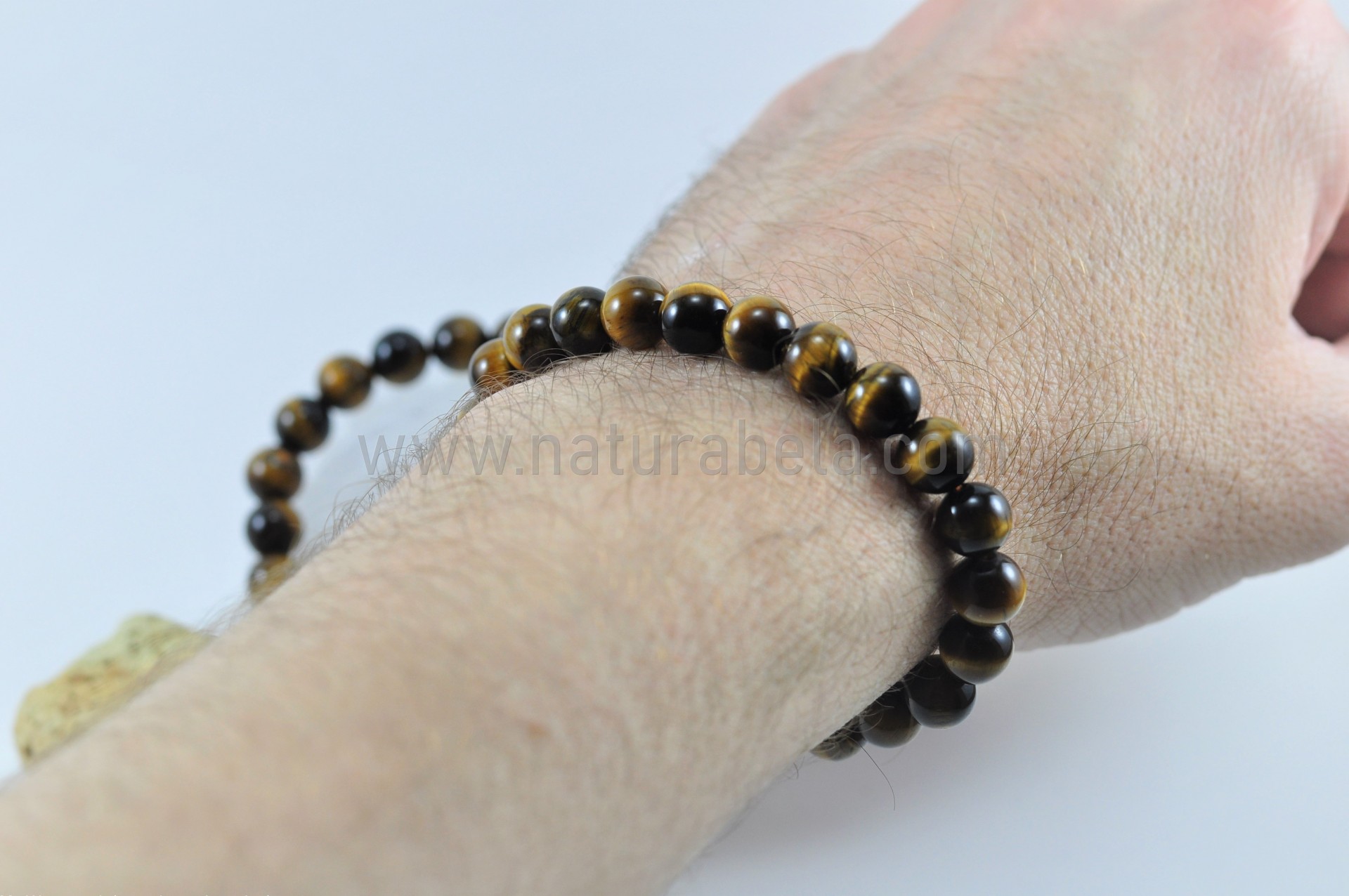 Pulseira de Bolas em Pedra Natural Olho-de-Tigre.