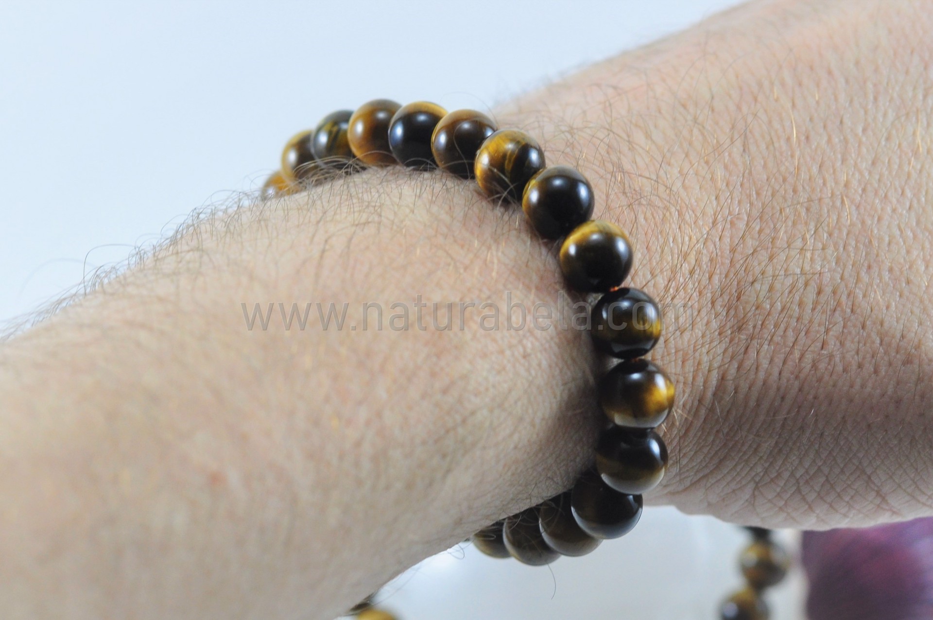Pulseira elástica com 23 bolas de 8mm de Pedra Olho-de-Tigre !