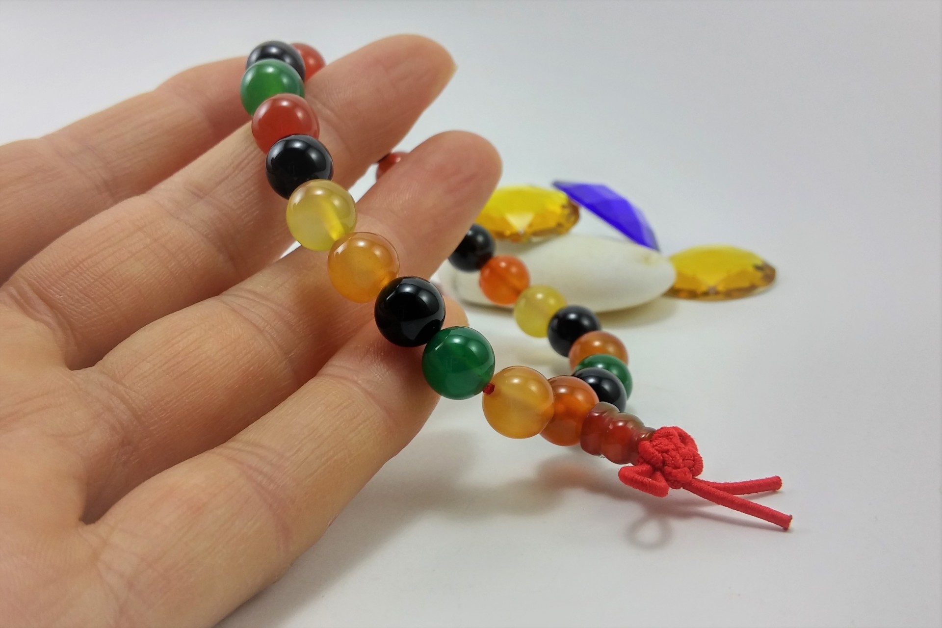 Esta pulseira tibetana contém 21 bolas + 1 central de 8mm de pedra Ágata. É uma pulseira elástica com peso aprox. 18 g.