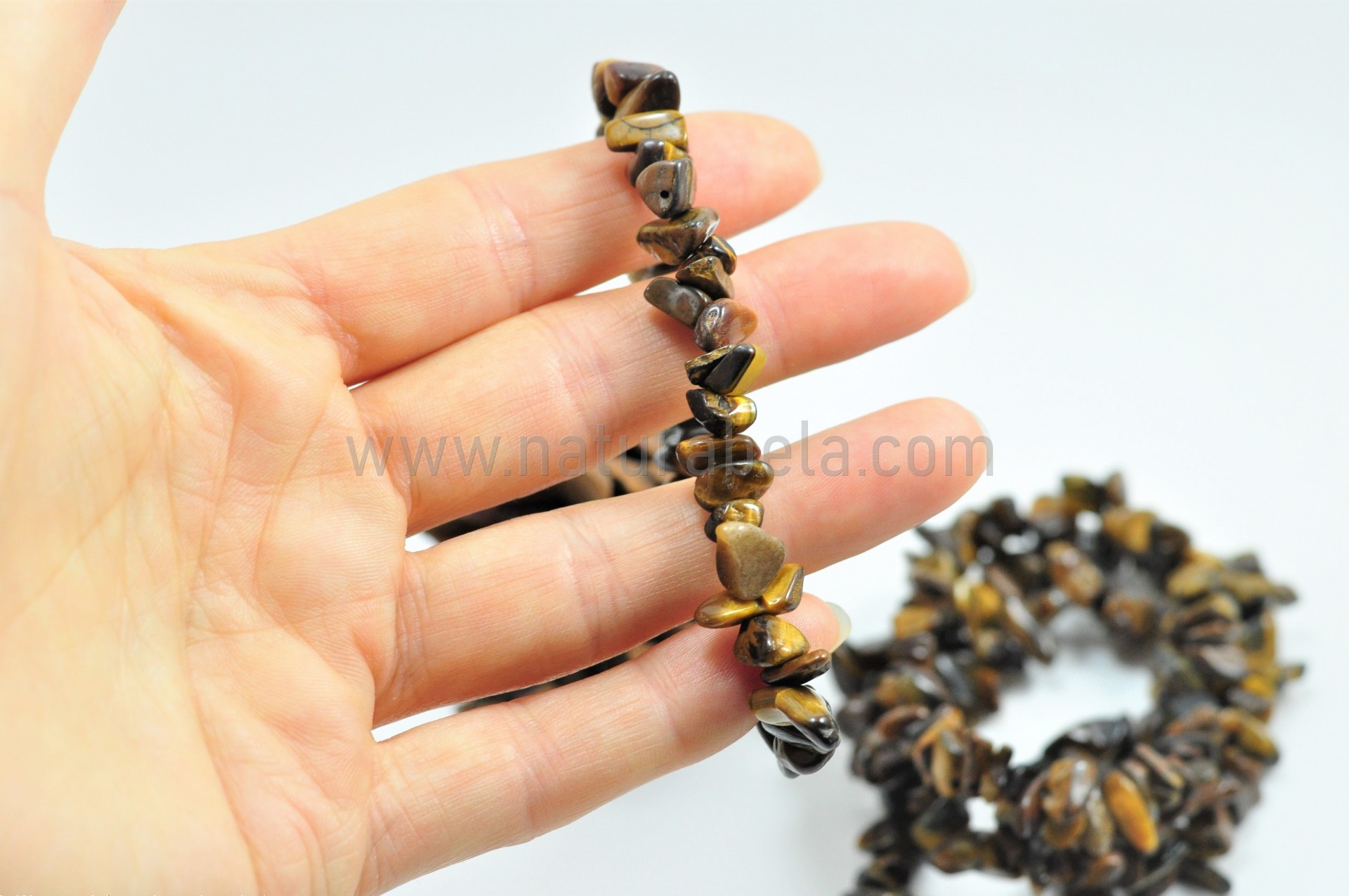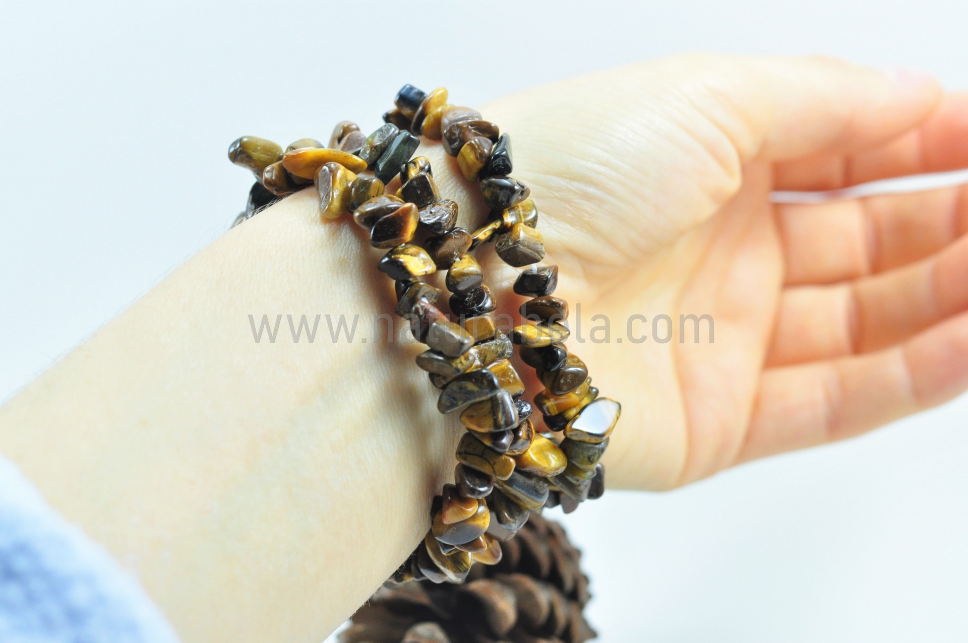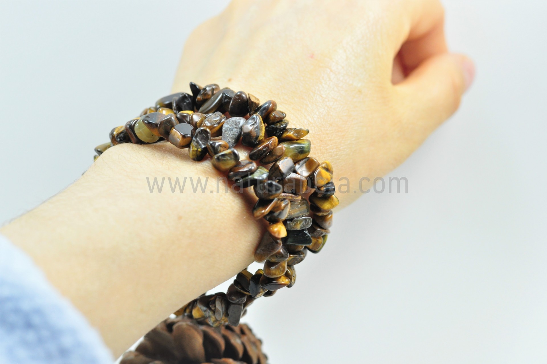 Pulseira elástica com pedra/cristal Olho de tigre (em bruto).