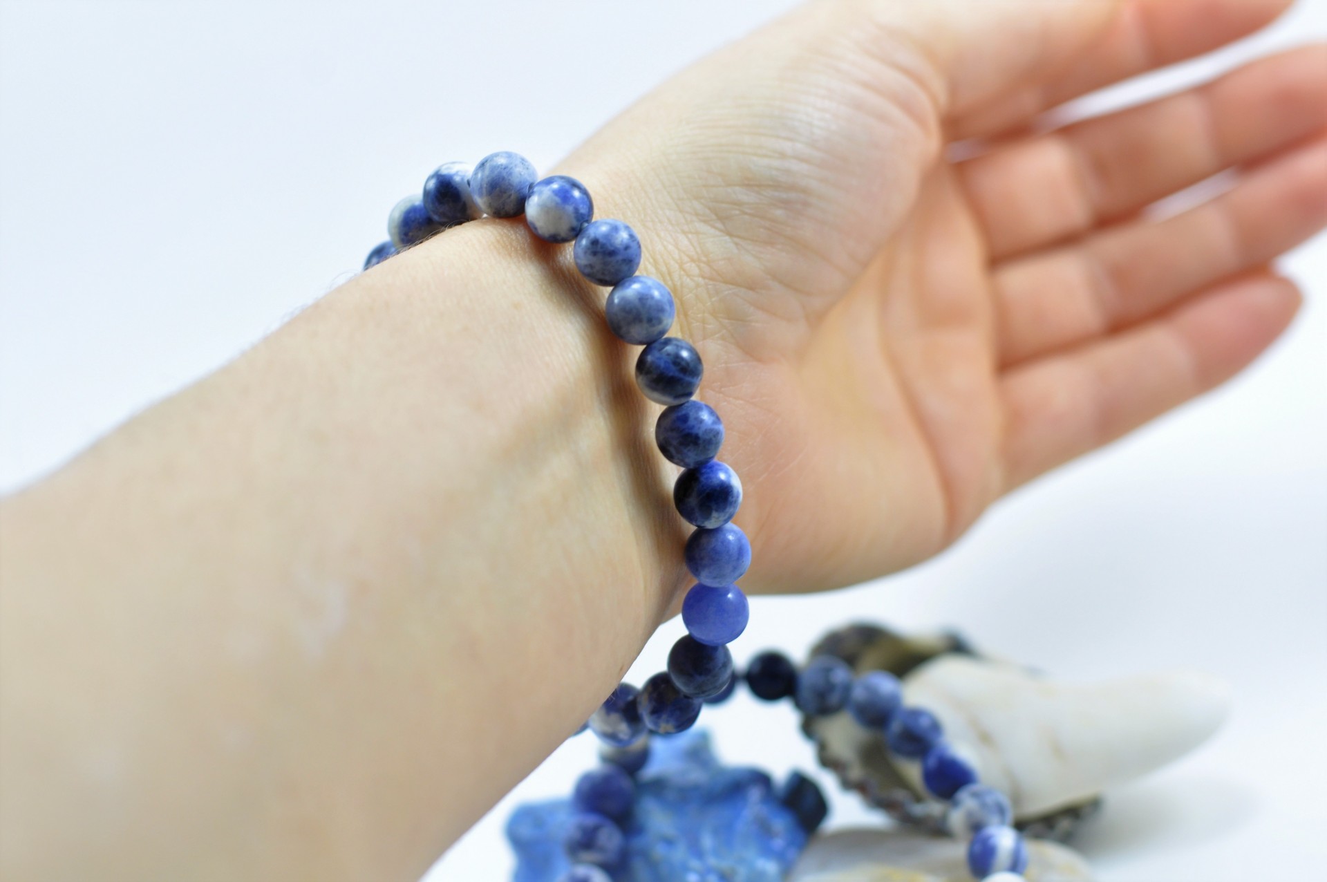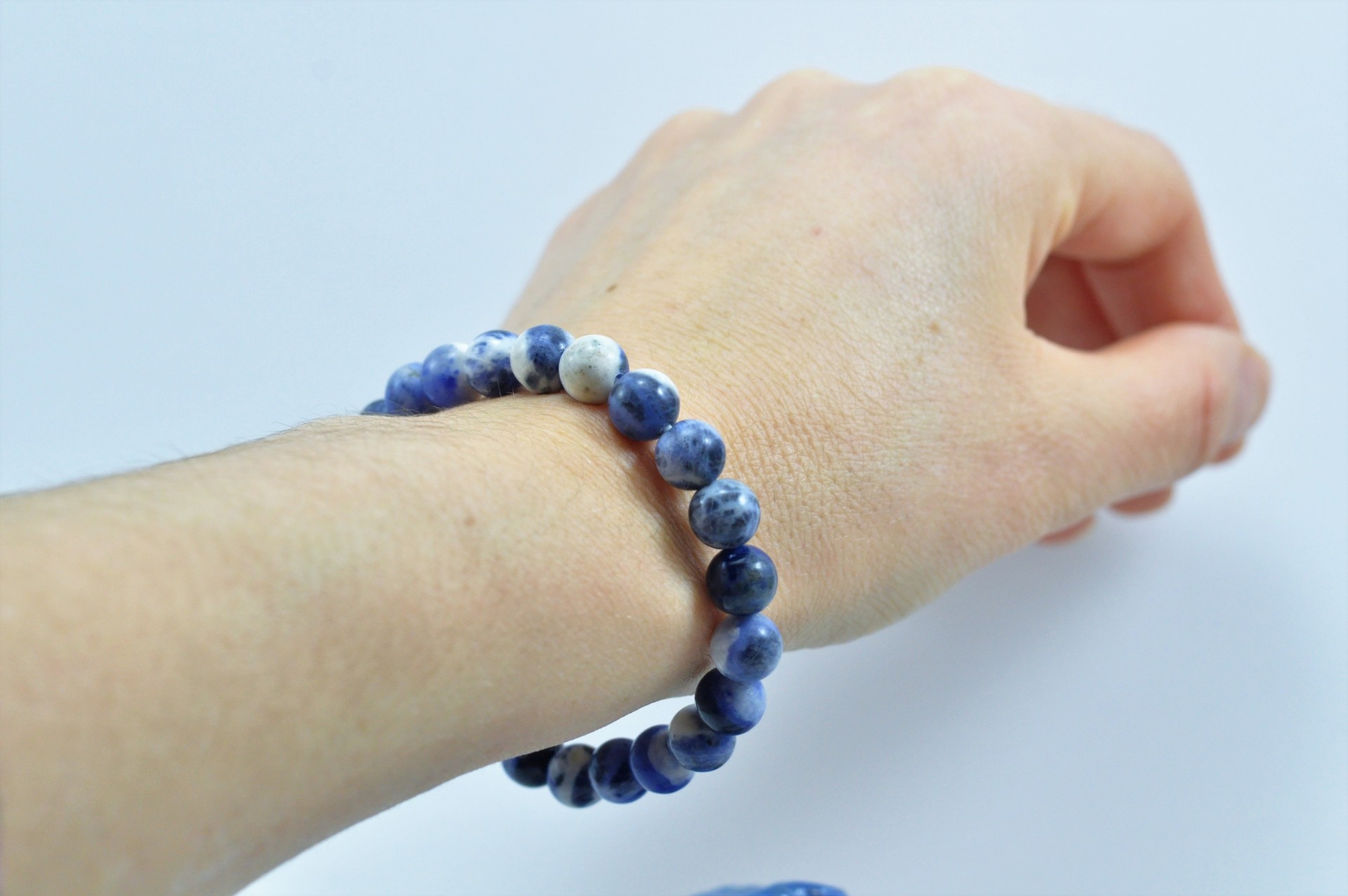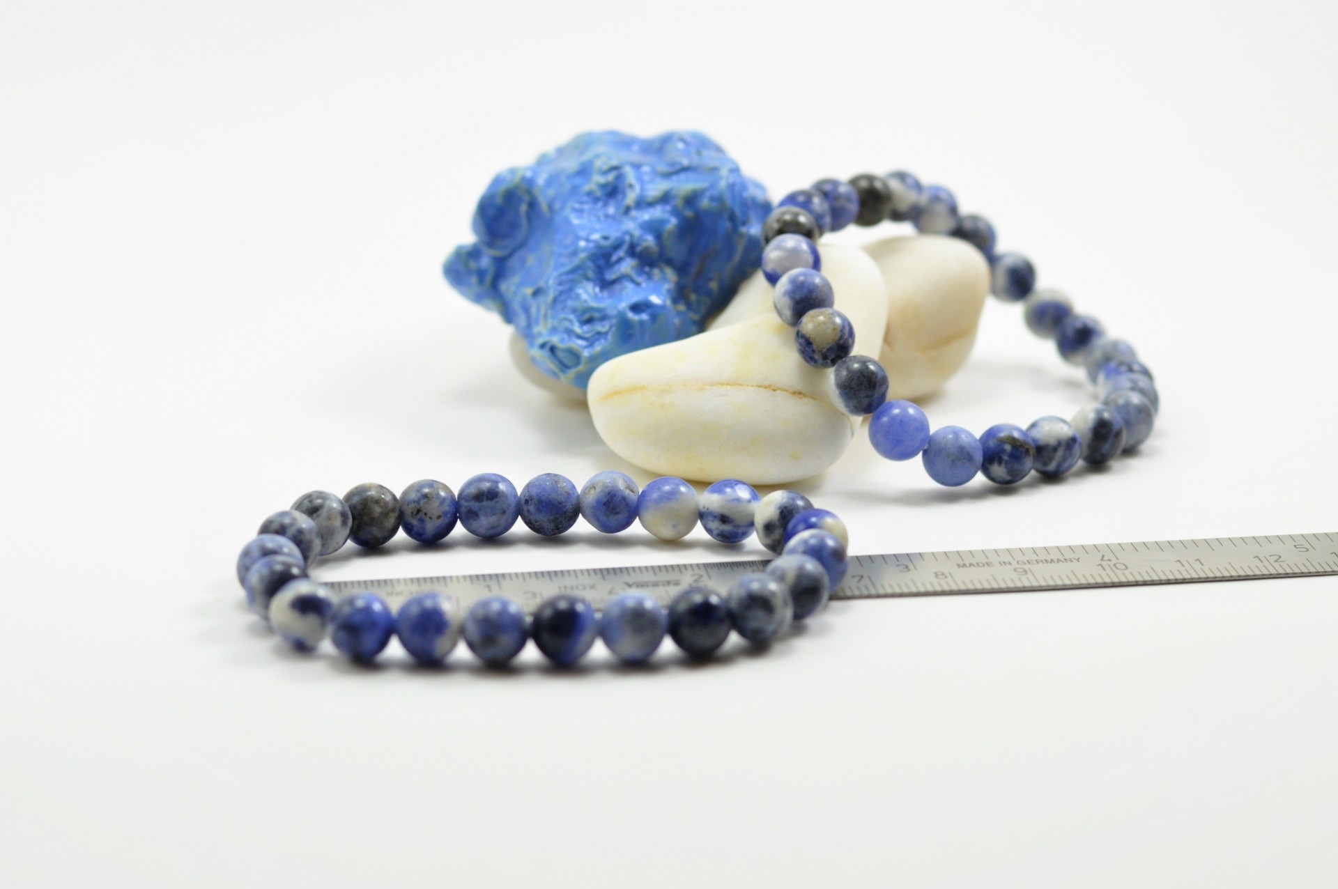 Pulseira realizada com bolas Sodalita de 8 mm cada. No total contém 23 bolas.