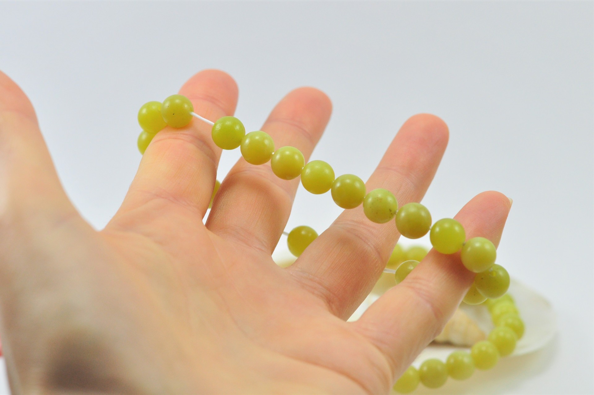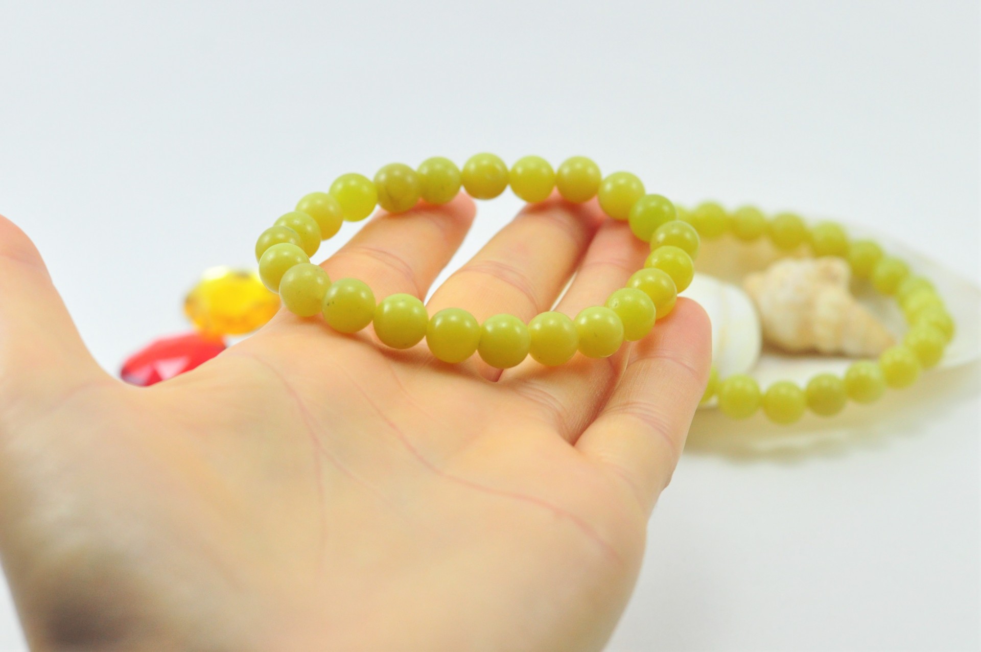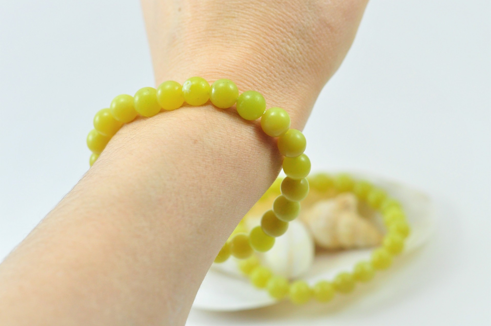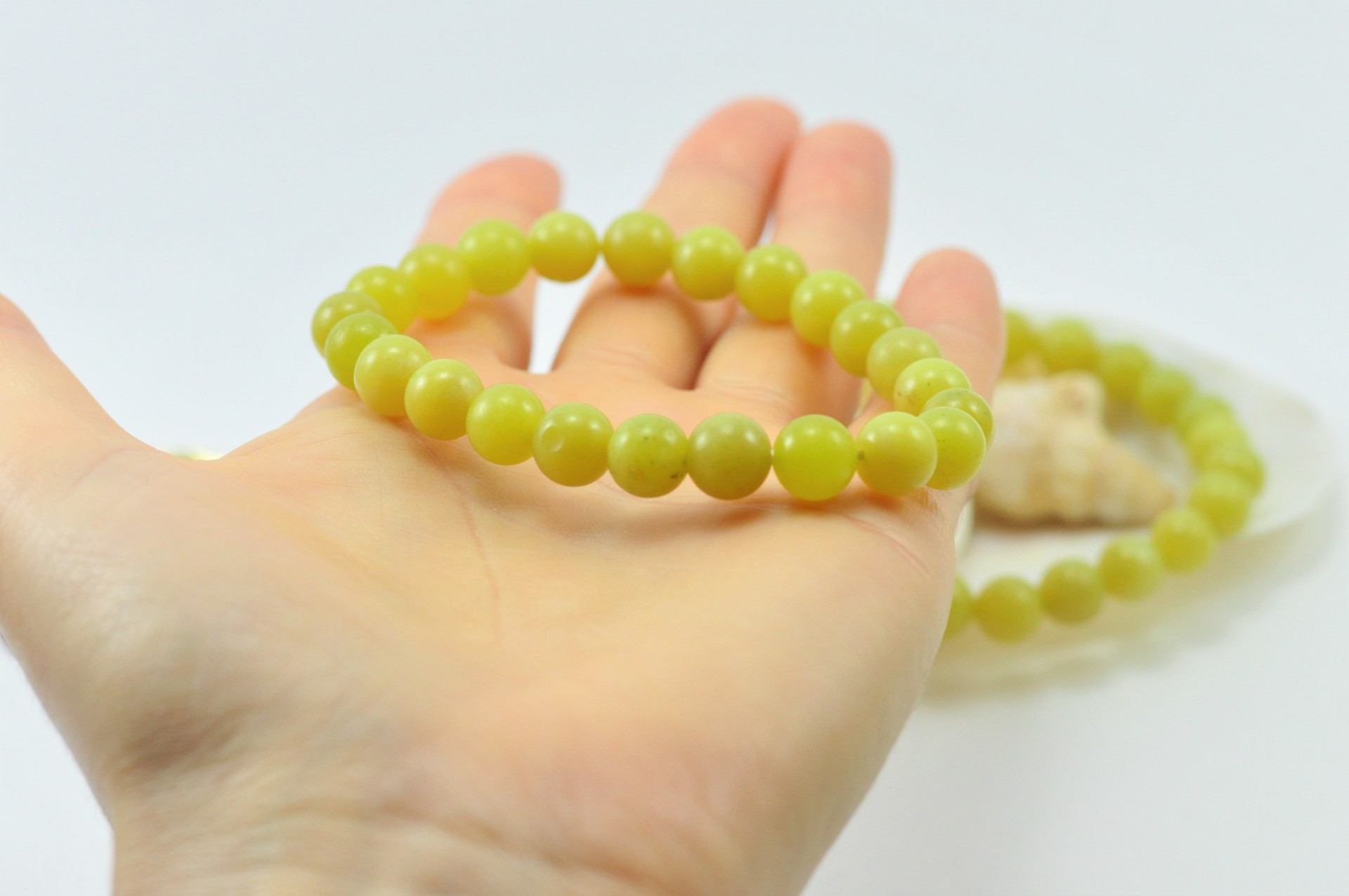Pulseira realizada com bolas Ágata Limão de 8 mm cada. No total contém 23 bolas.