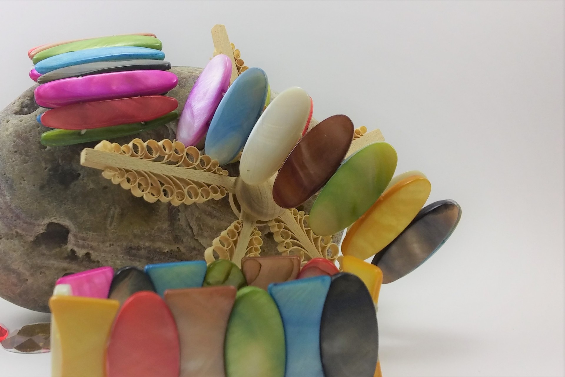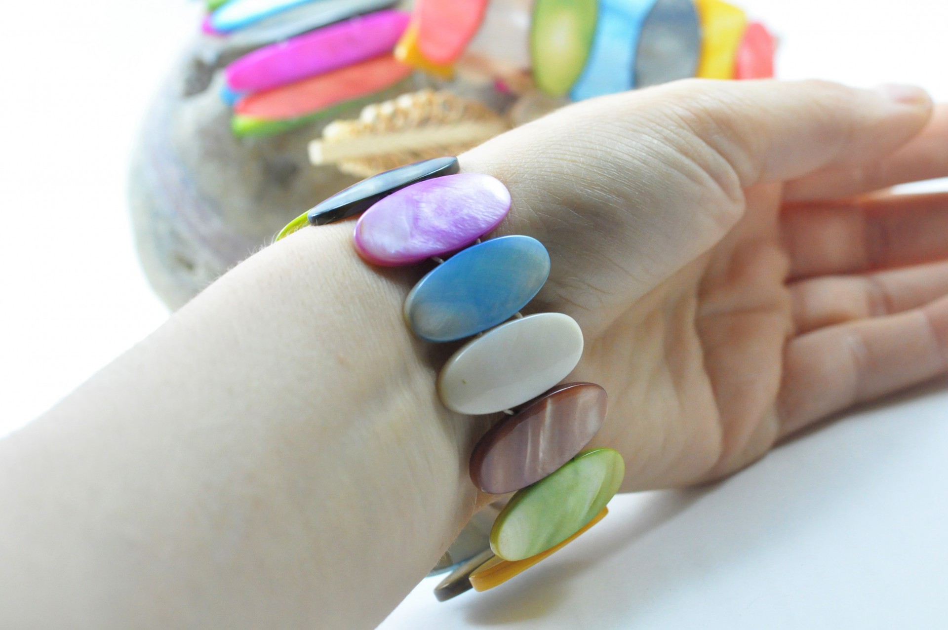 Pulseira elástica com Madrepérola colorida.