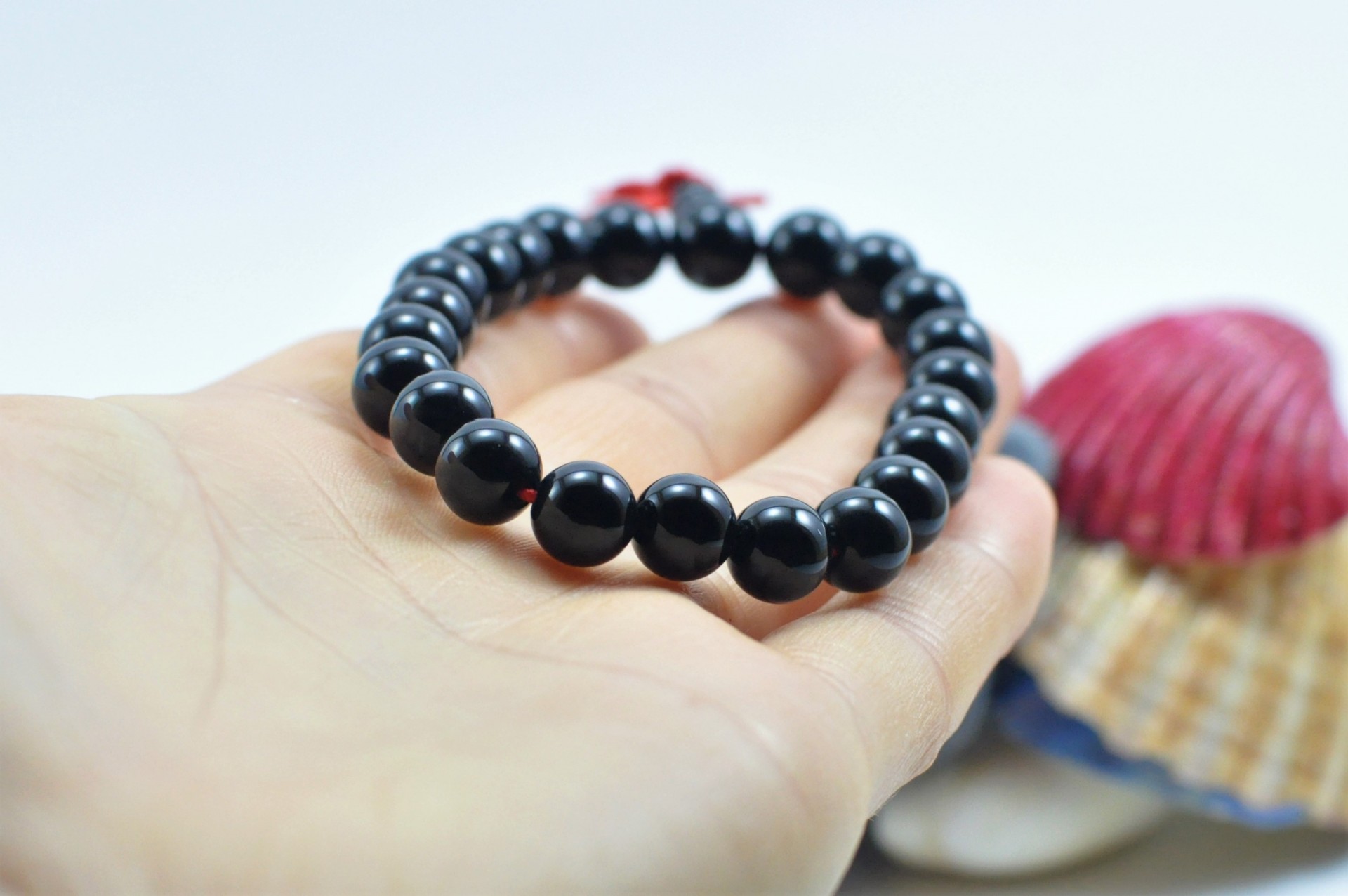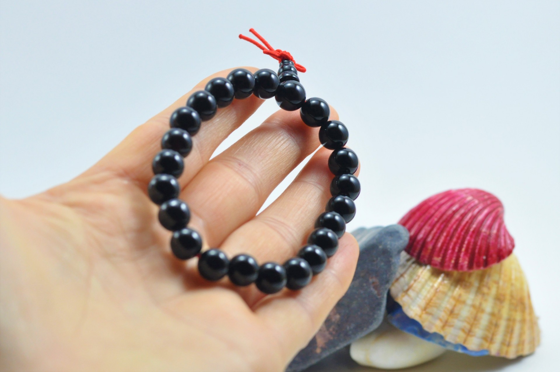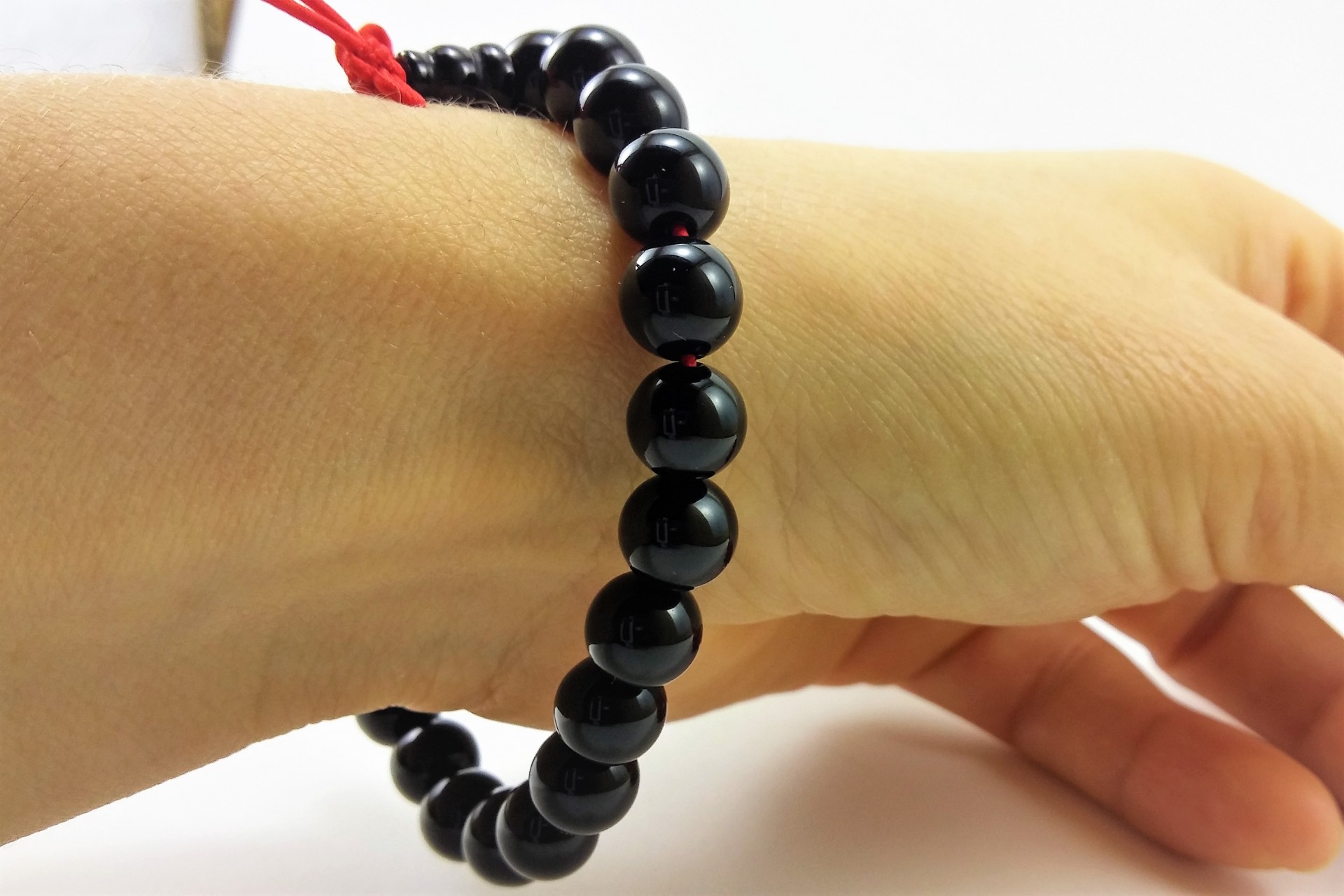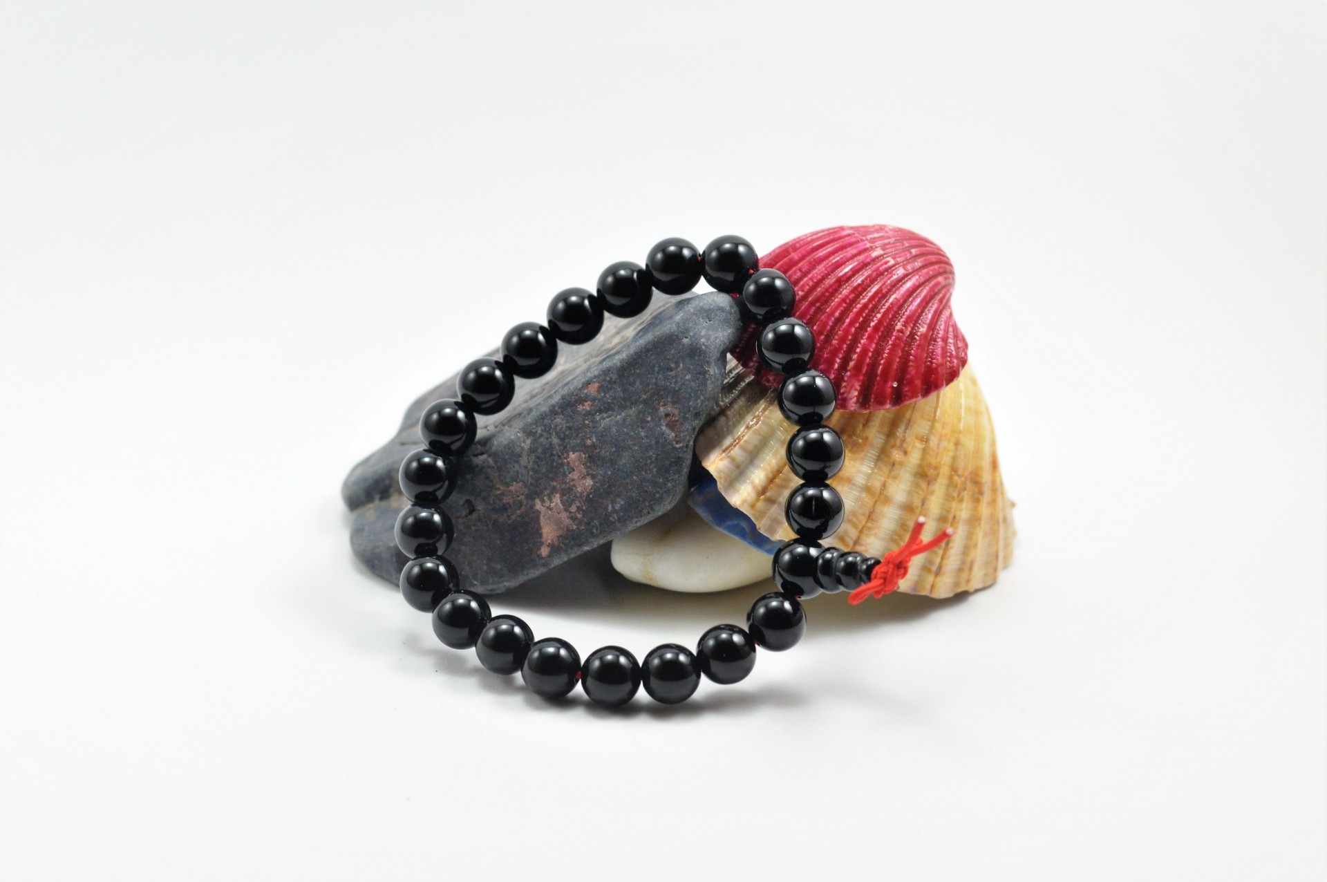 Esta pulseira tibetana contém 22 bolas + 1 central de 8mm de pedra Ágata Negra. É uma pulseira elástica com peso aprox. 19 g.