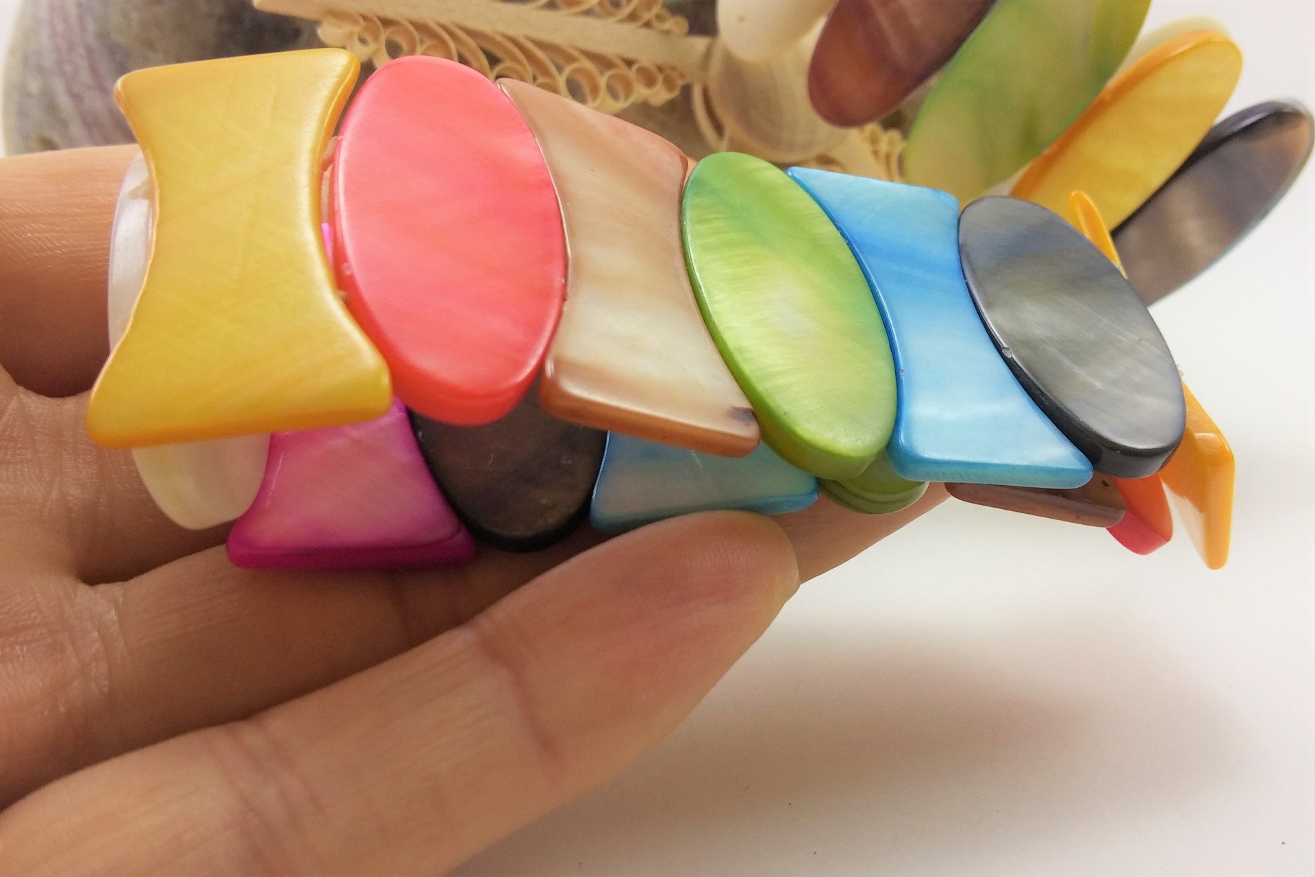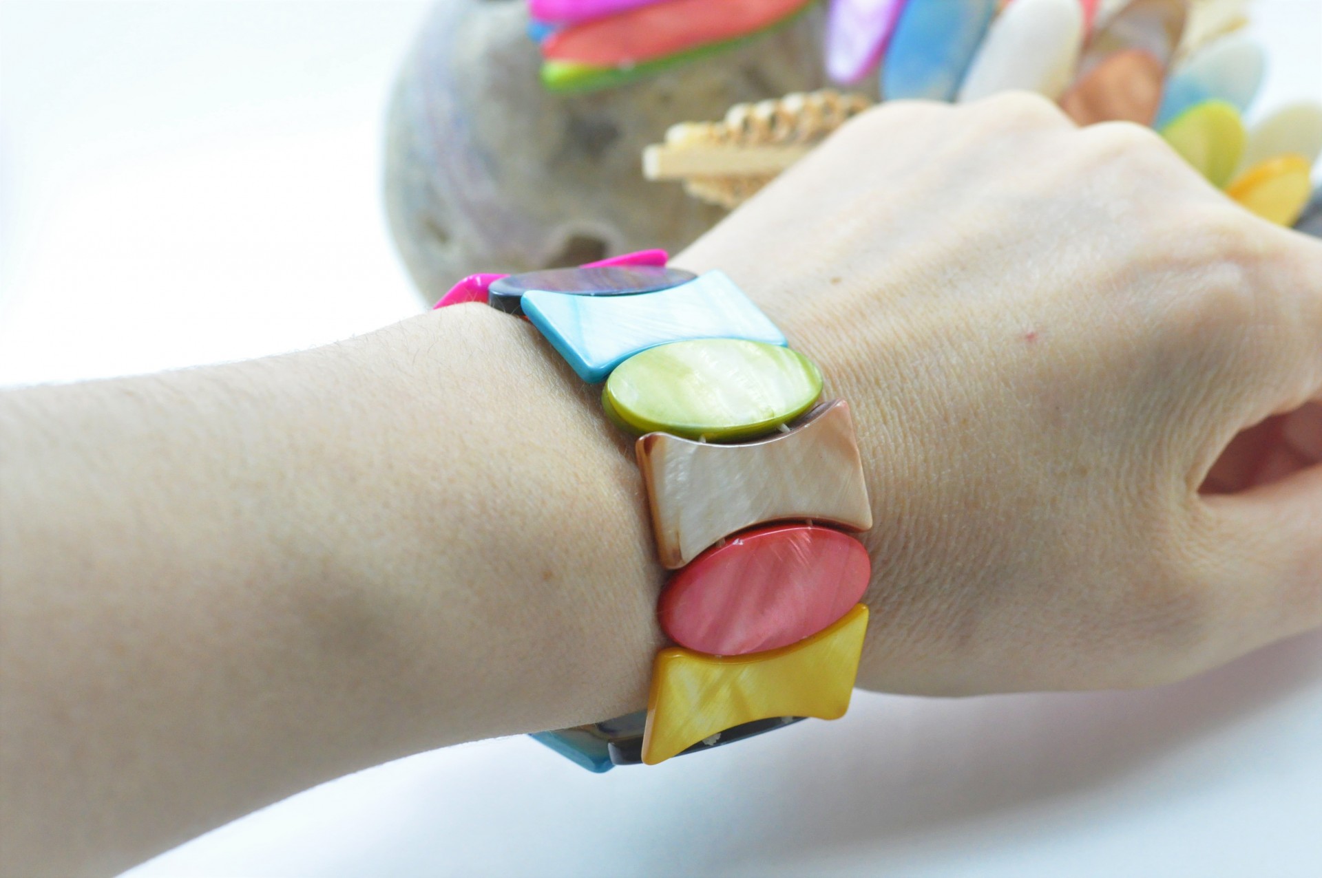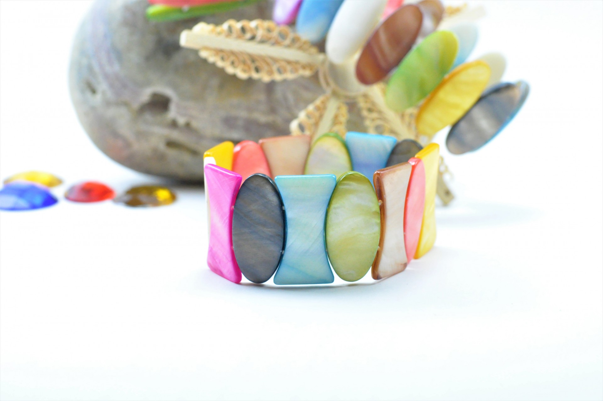 Pulseira elástica com Madrepérola colorida.
