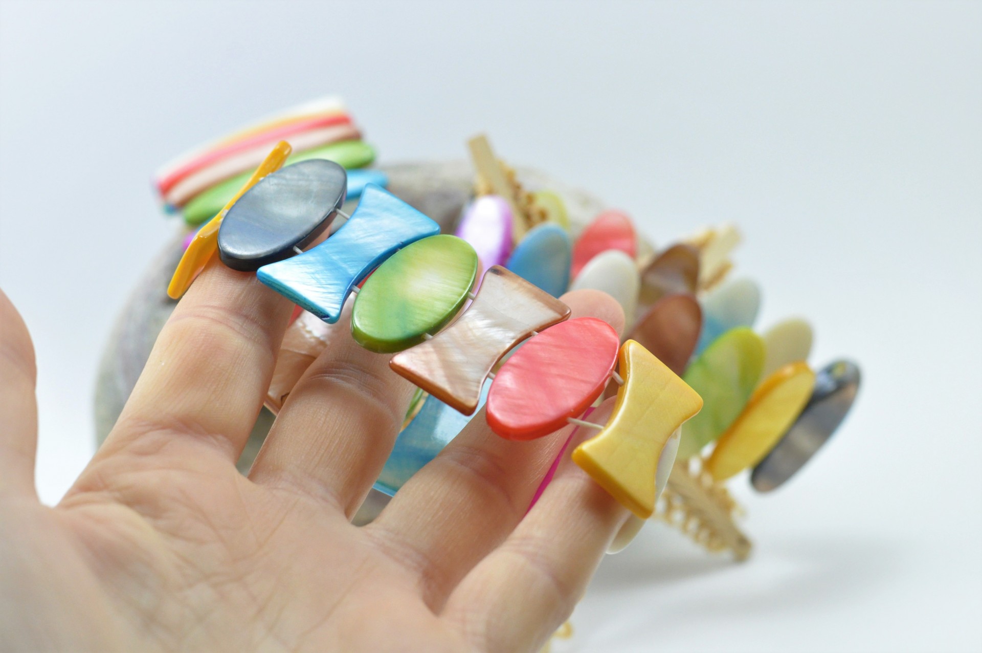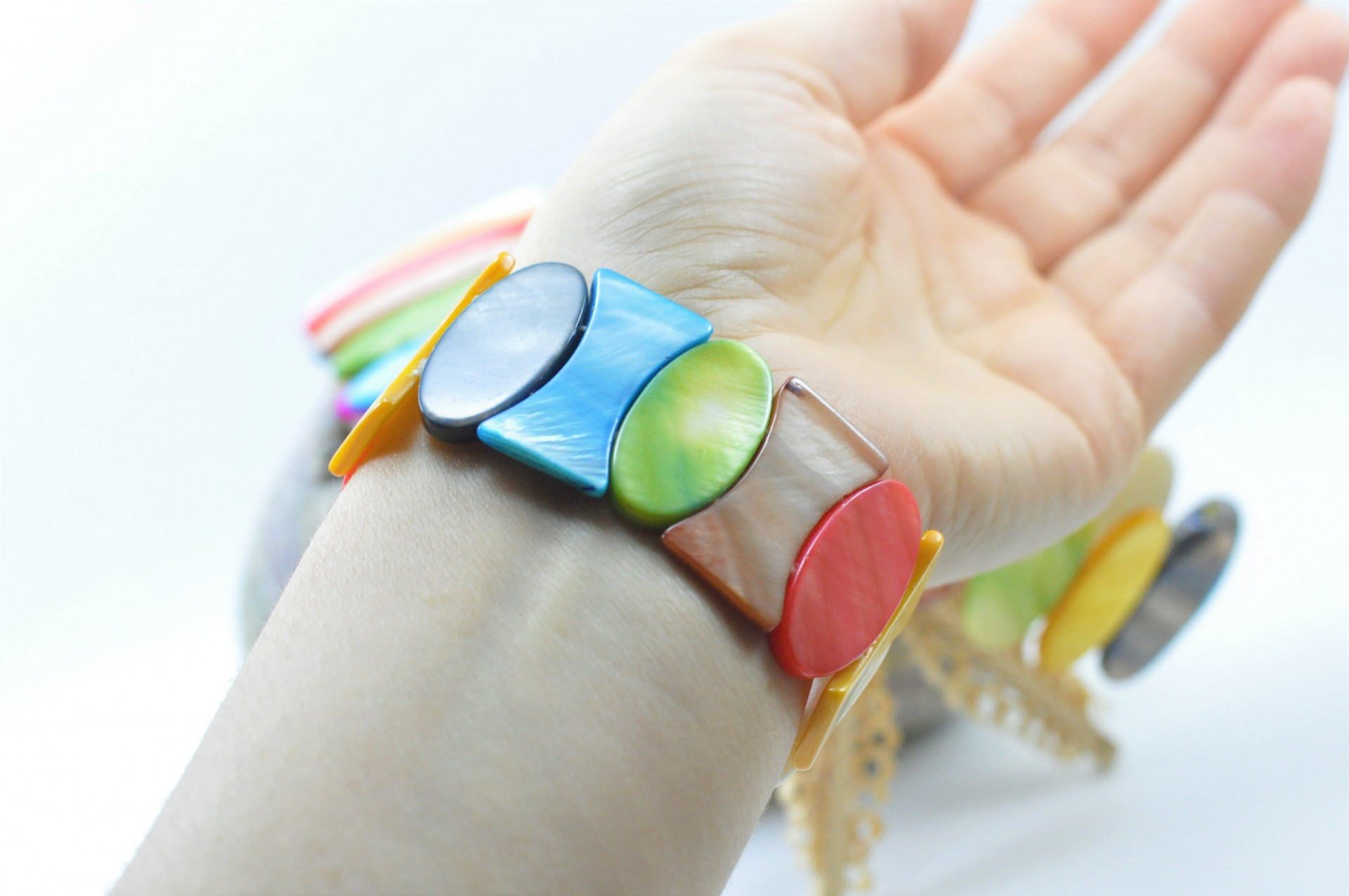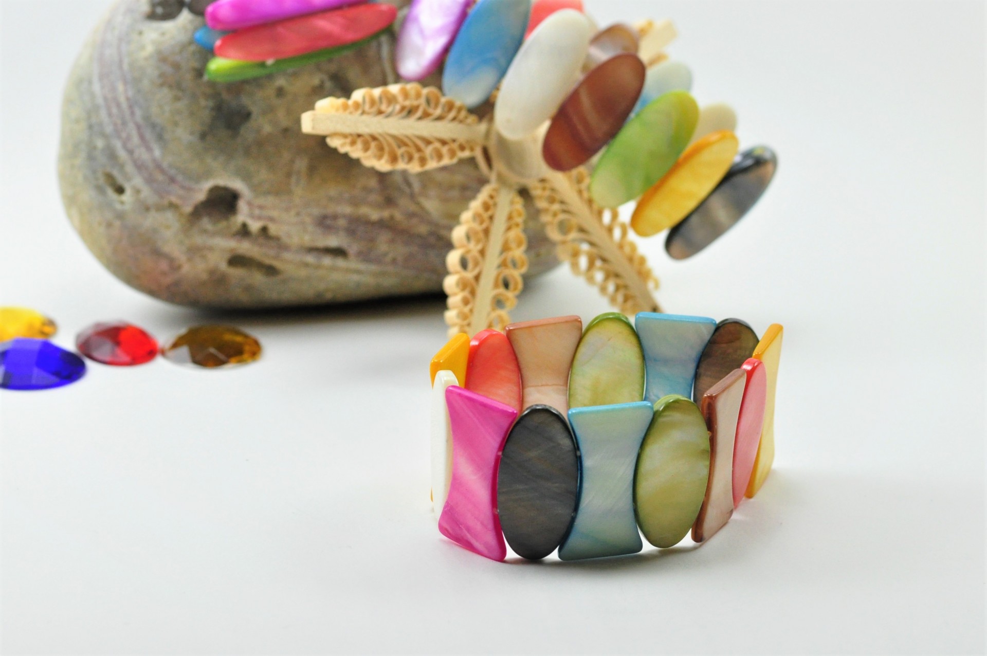 Pulseira elástica com Madrepérola colorida.