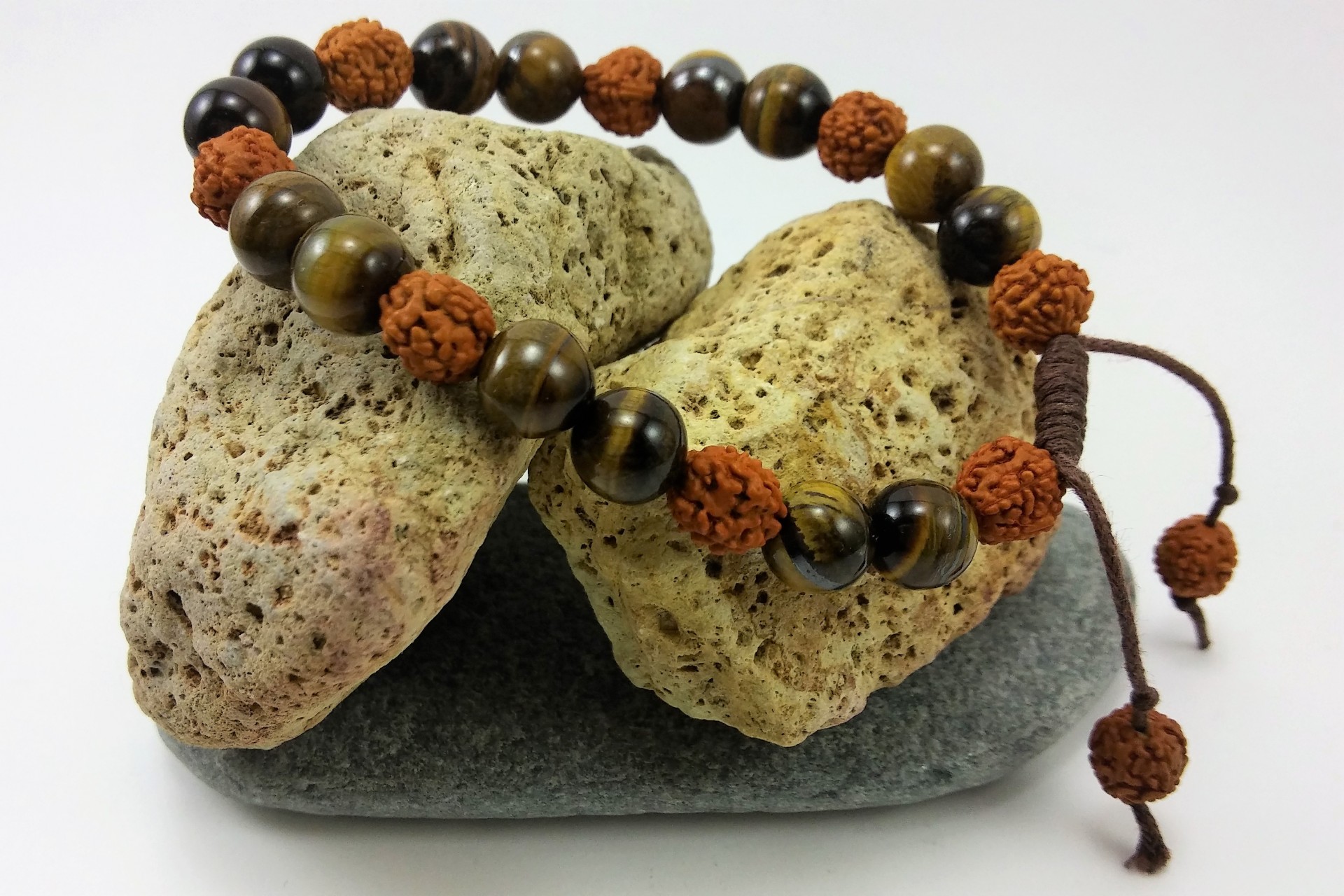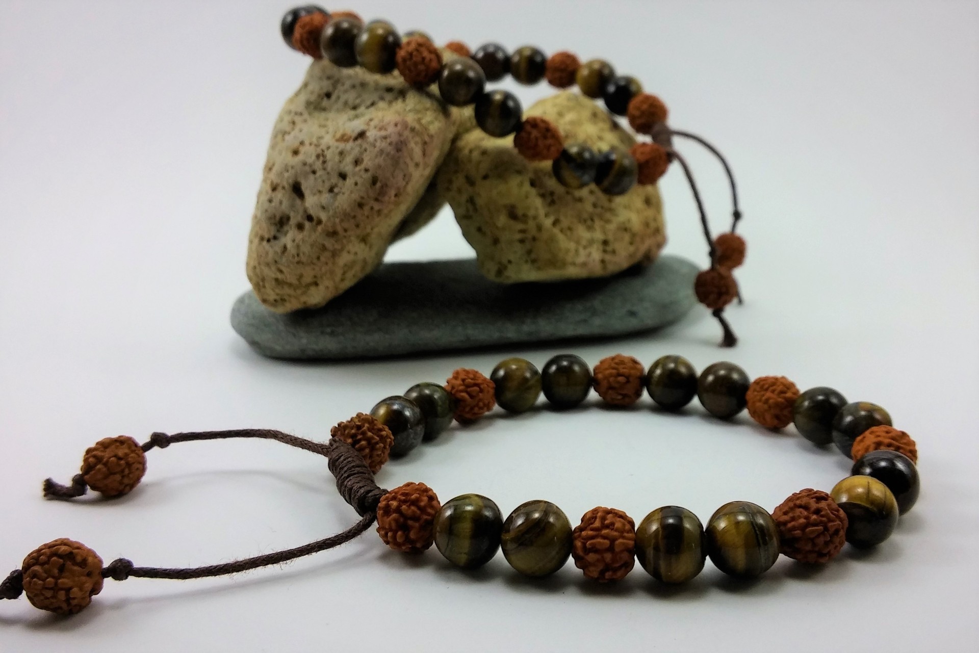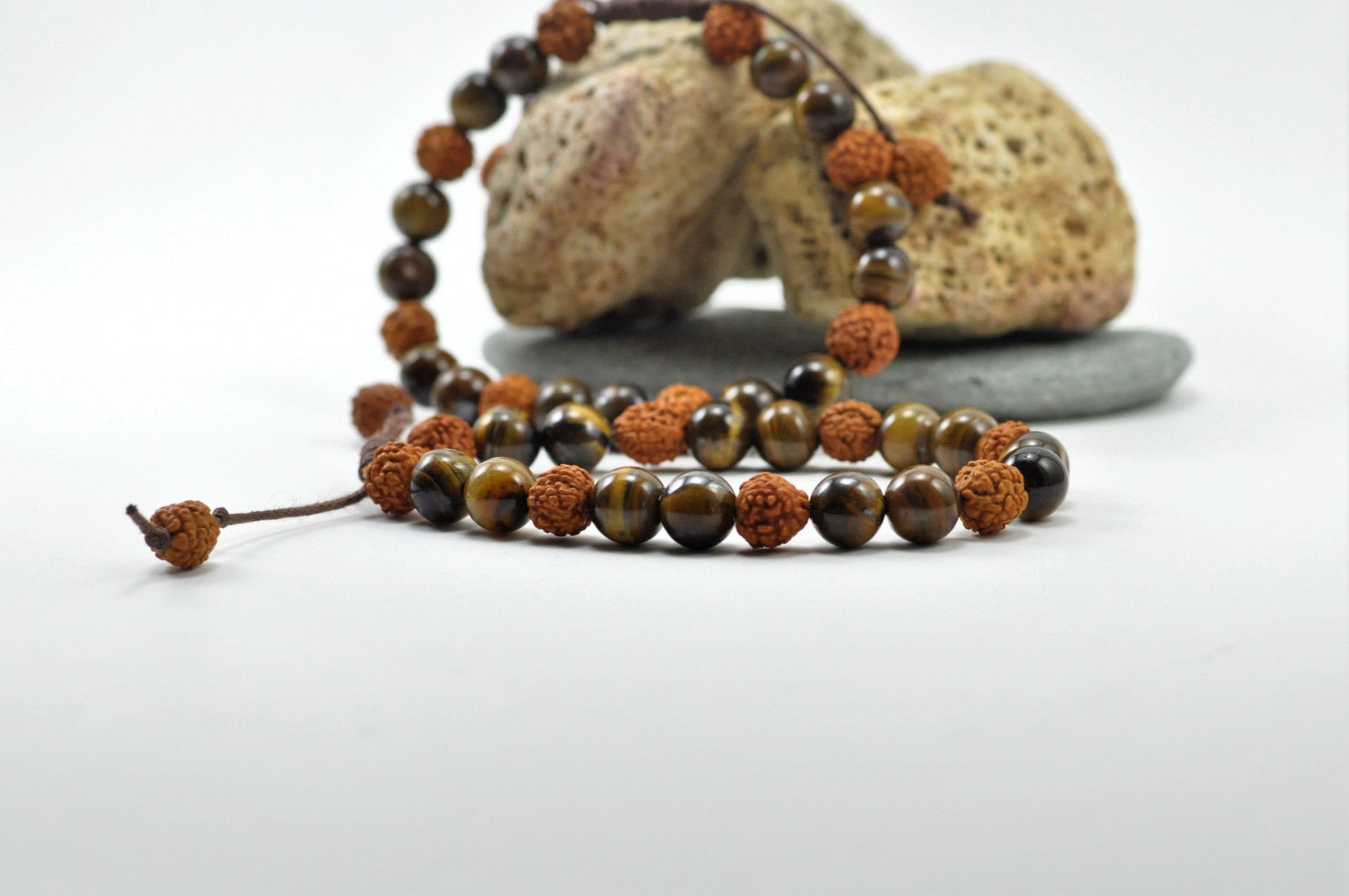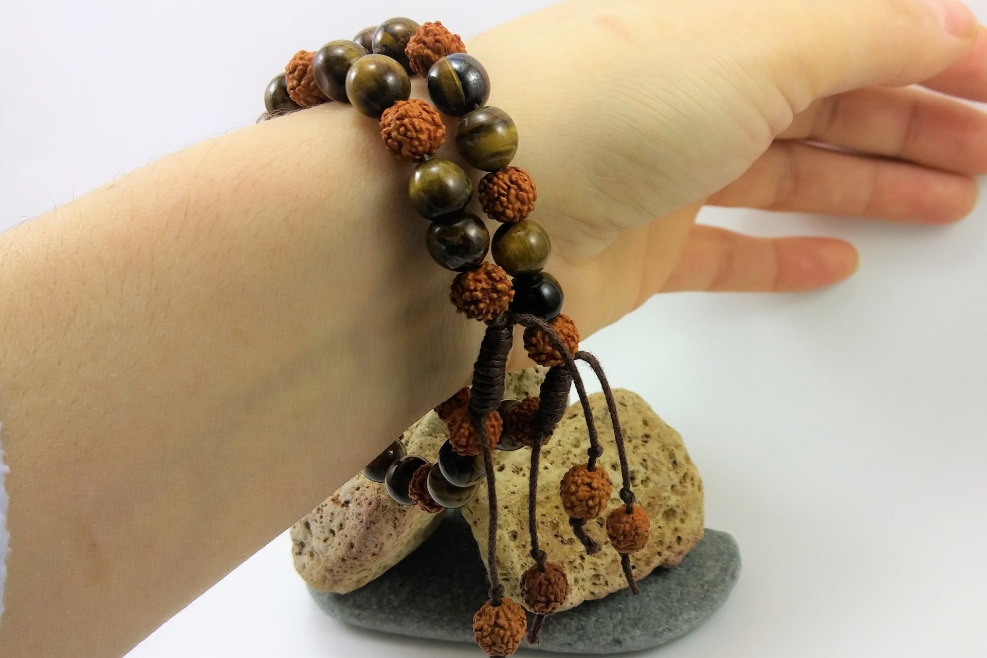 A união das sementes Rudraksha com a pedra Olho-de-Tigre é extremamente eficaz!