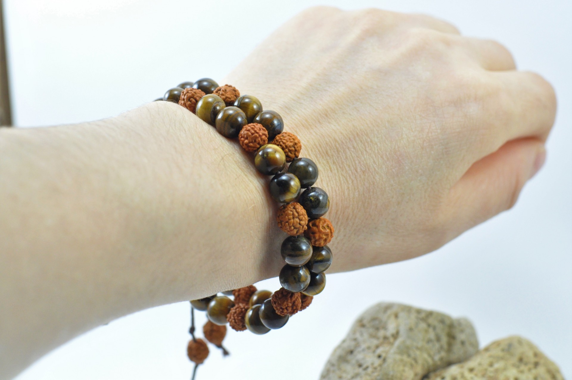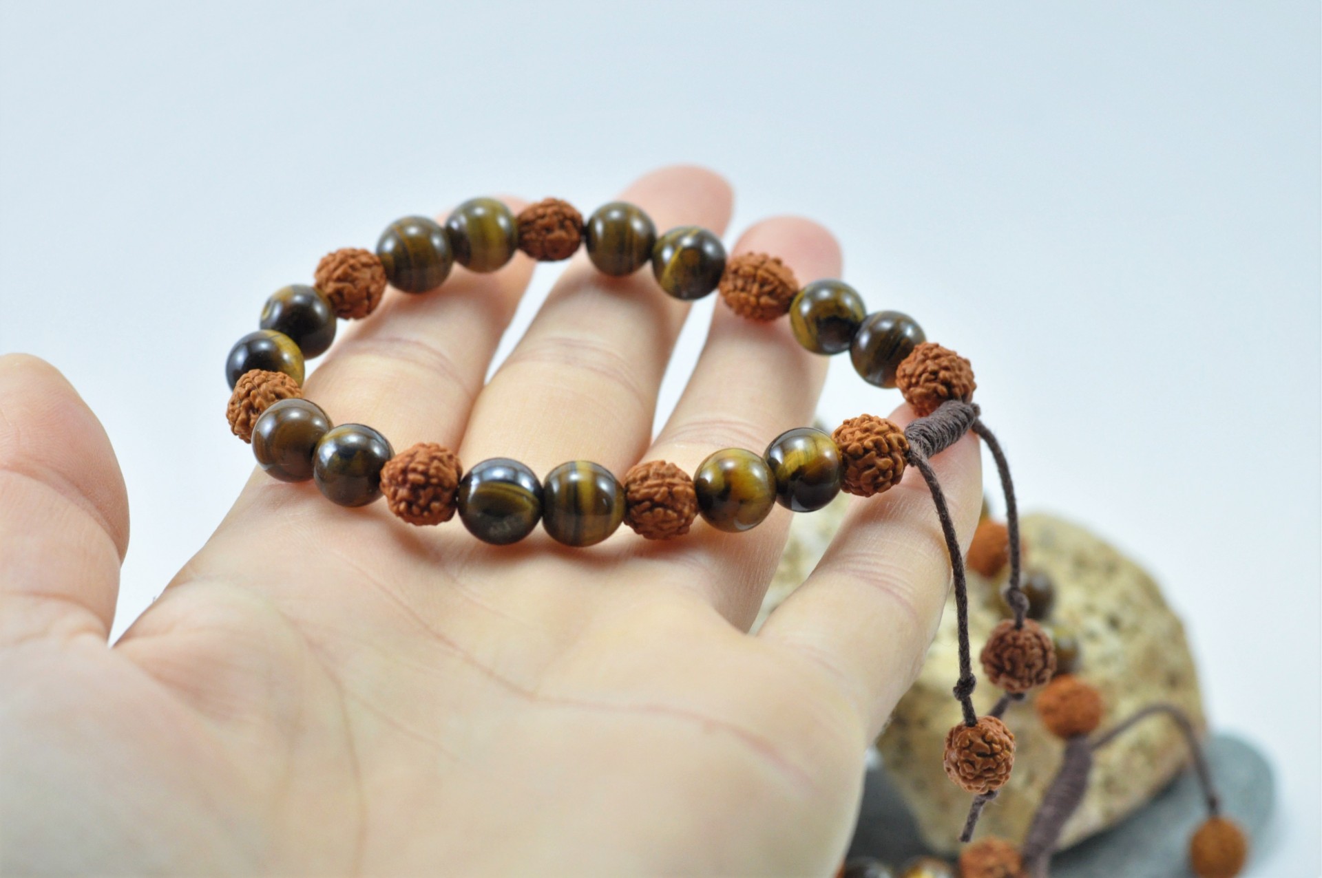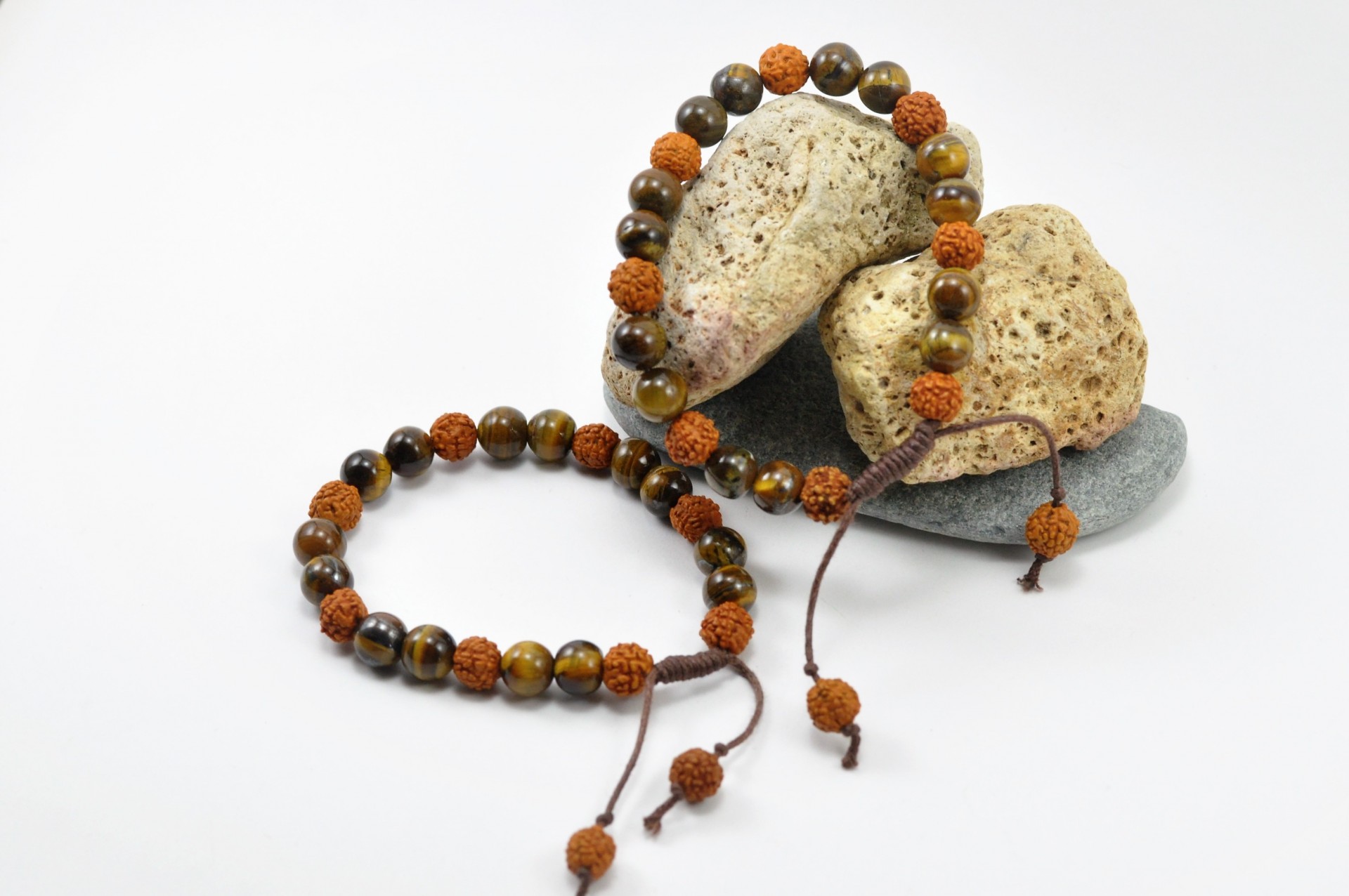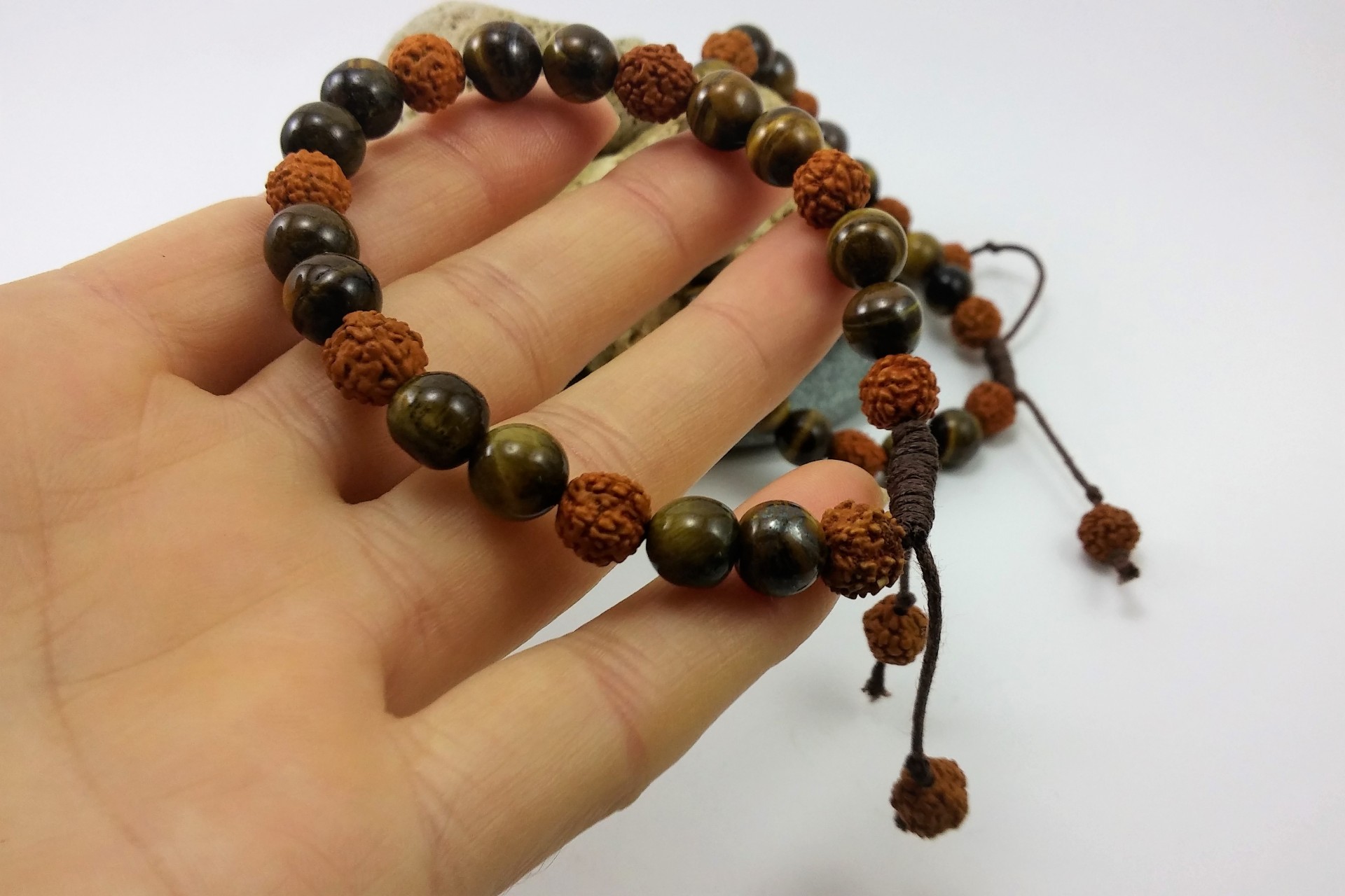 A união das sementes Rudraksha com a pedra Olho-de-Tigre é extremamente eficaz!